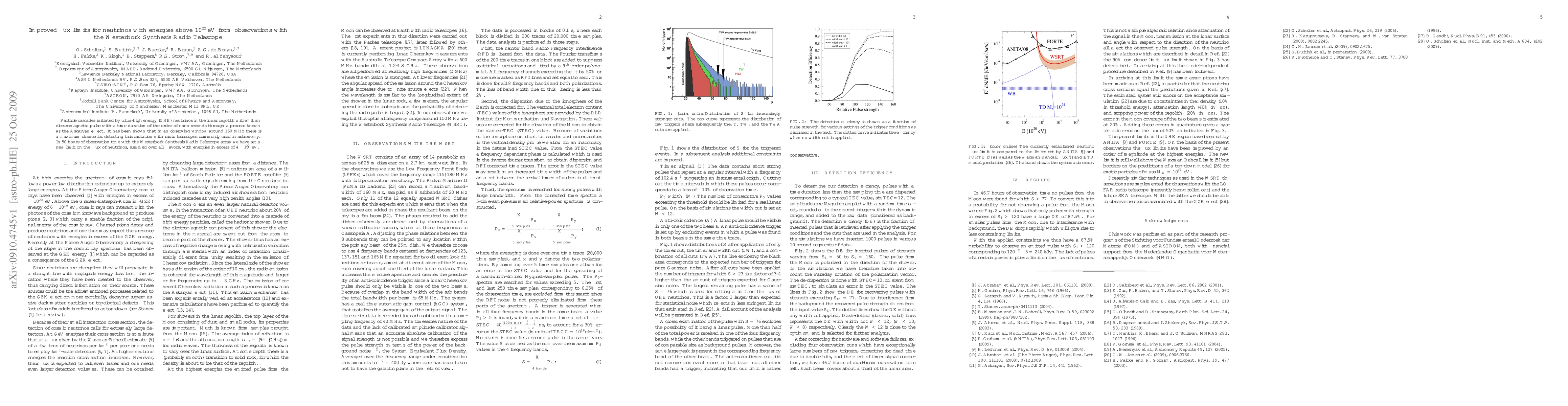 Particle cascades initiated by ultra-high energy (UHE) neutrinos in the lunar regolith will emit an electromagnetic pulse with a time duration of the order of nano seconds through a process known as the Askaryan effect. It has been shown that in an observing window around 150 MHz there is a maximum chance for detecting this radiation with radio telescopes commonly used in astronomy. In 50 hours of observation time with the Westerbork Synthesis Radio Telescope array we have set a new limit on the flux of neutrinos, summed over all flavors, with energies in excess of $4\times10^{22}$ eV.