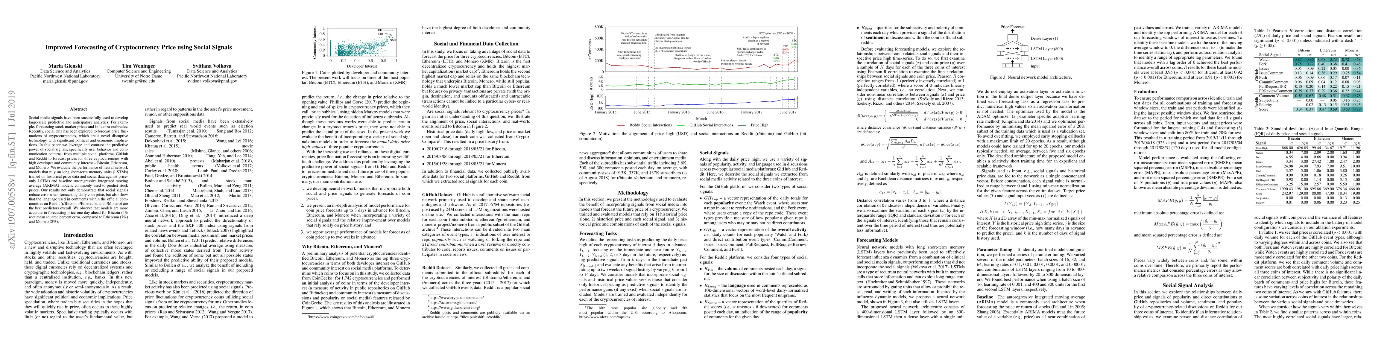 This research is important as it demonstrates the utility of social signals in improving cryptocurrency price forecasting, which can have implications for investment strategies and risk management in the volatile cryptocurrency market.