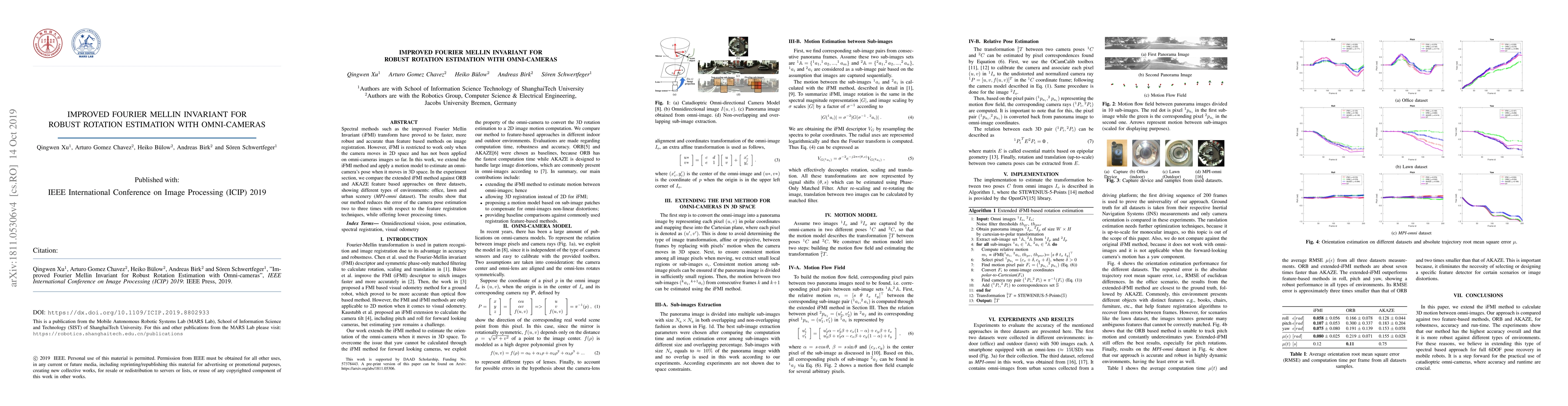 This paper extends the improved Fourier Mellin Invariant (iFMI) transform for robust 3D rotation estimation in omni-cameras, demonstrating superior accuracy and speed over feature-based methods in various environments, including office, lawn, and urban settings. The results show a two to four times improvement in pose estimation accuracy compared to ORB and AKAZE.