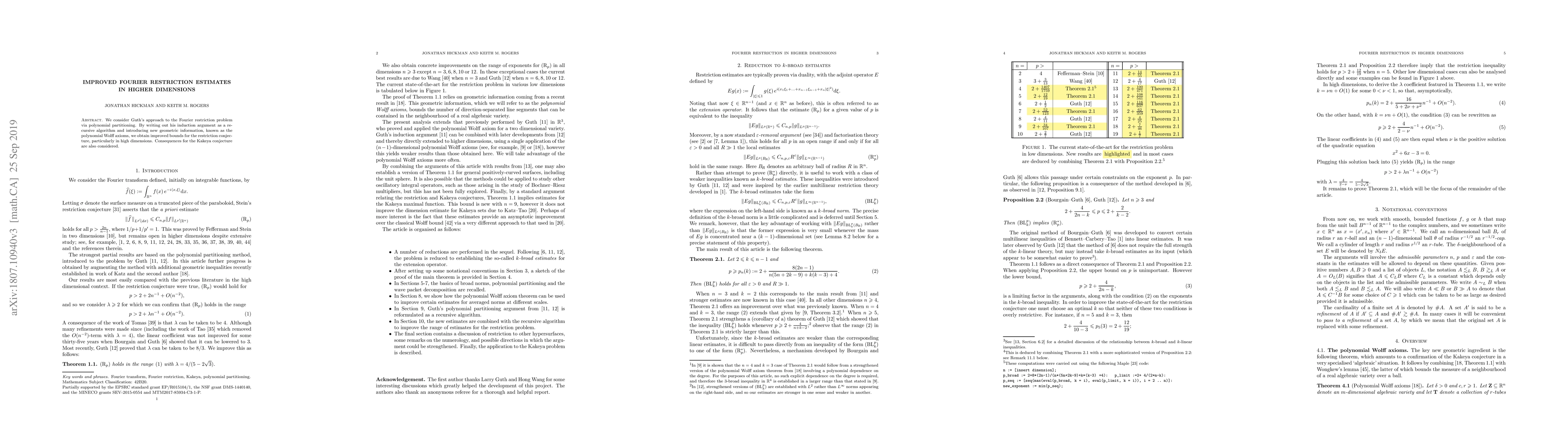 We consider Guth's approach to the Fourier restriction problem via polynomial partitioning. By writing out his induction argument as a recursive algorithm and introducing new geometric information, known as the polynomial Wolff axioms, we obtain improved bounds for the restriction conjecture, particularly in high dimensions. Consequences for the Kakeya conjecture are also considered.