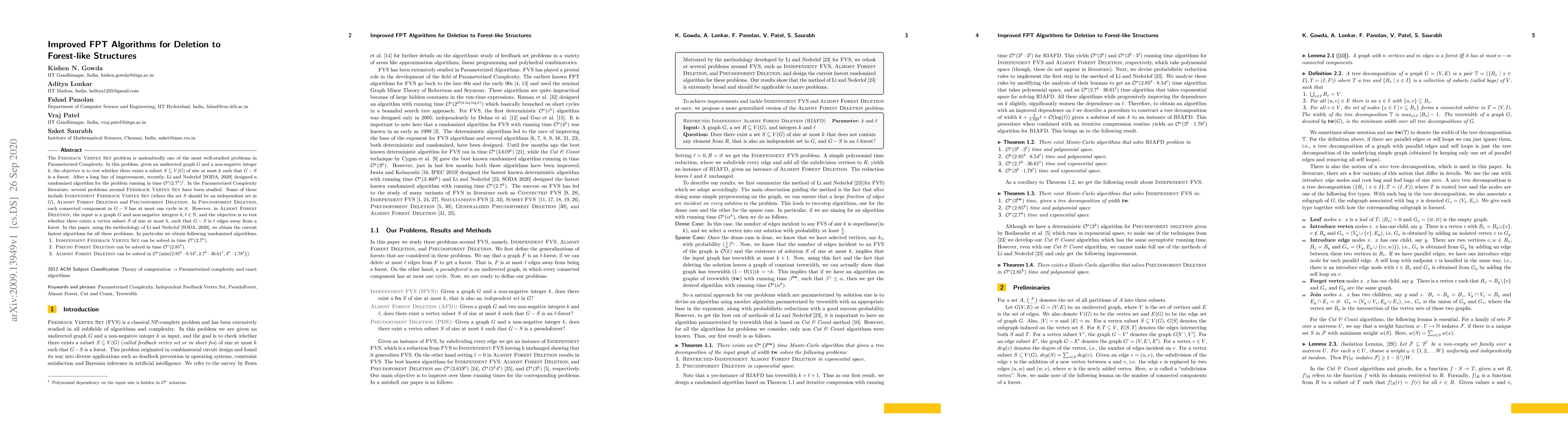 The Feedback Vertex Set problem is undoubtedly one of the most well-studied problems in Parameterized Complexity. In this problem, given an undirected graph $G$ and a non-negative integer $k$, the objective is to test whether there exists a subset $S\subseteq V(G)$ of size at most $k$ such that $G-S$ is a forest. After a long line of improvement, recently, Li and Nederlof [SODA, 2020] designed a randomized algorithm for the problem running in time $\mathcal{O}^{\star}(2.7^k)$. In the Parameterized Complexity literature, several problems around Feedback Vertex Set have been studied. Some of these include Independent Feedback Vertex Set (where the set $S$ should be an independent set in $G$), Almost Forest Deletion and Pseudoforest Deletion. In Pseudoforest Deletion, each connected component in $G-S$ has at most one cycle in it. However, in Almost Forest Deletion, the input is a graph $G$ and non-negative integers $k,\ell \in \mathbb{N}$, and the objective is to test whether there exists a vertex subset $S$ of size at most $k$, such that $G-S$ is $\ell$ edges away from a forest. In this paper, using the methodology of Li and Nederlof [SODA, 2020], we obtain the current fastest algorithms for all these problems. In particular we obtain following randomized algorithms. 1) Independent Feedback Vertex Set can be solved in time $\mathcal{O}^{\star}(2.7^k)$. 2) Pseudo Forest Deletion can be solved in time $\mathcal{O}^{\star}(2.85^k)$. 3) Almost Forest Deletion can be solved in $\mathcal{O}^{\star}(\min\{2.85^k \cdot 8.54^\ell,2.7^k \cdot 36.61^\ell,3^k \cdot 1.78^\ell\})$.