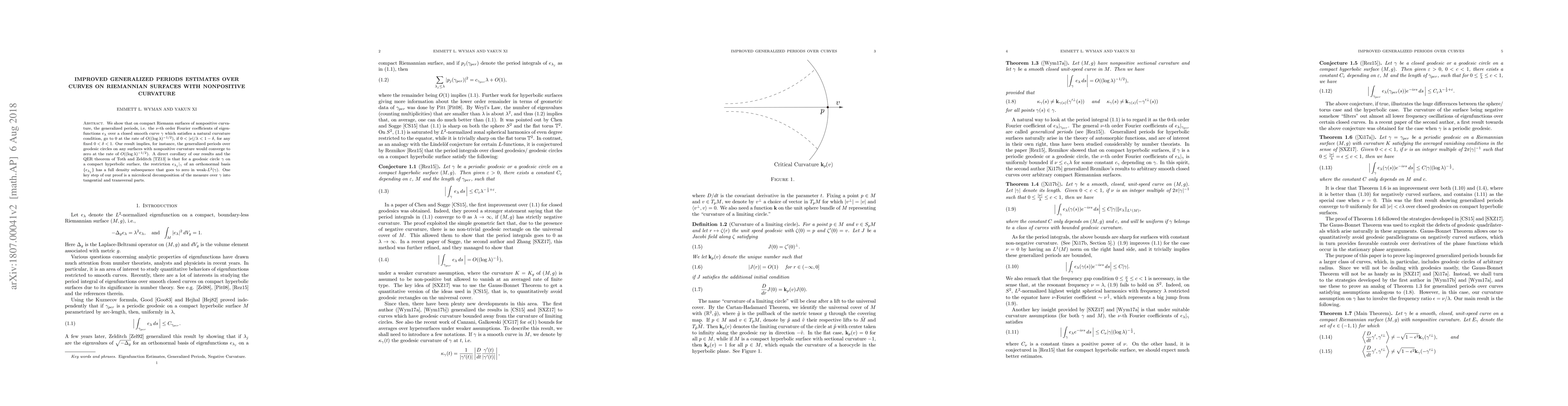 This paper demonstrates that on compact Riemann surfaces with nonpositive curvature, the generalized periods of eigenfunctions decay at a rate of $O((\log\lambda)^{-1/2})$ under certain conditions. The result implies convergence for geodesic circles and uses a microlocal decomposition of the measure over the curve.