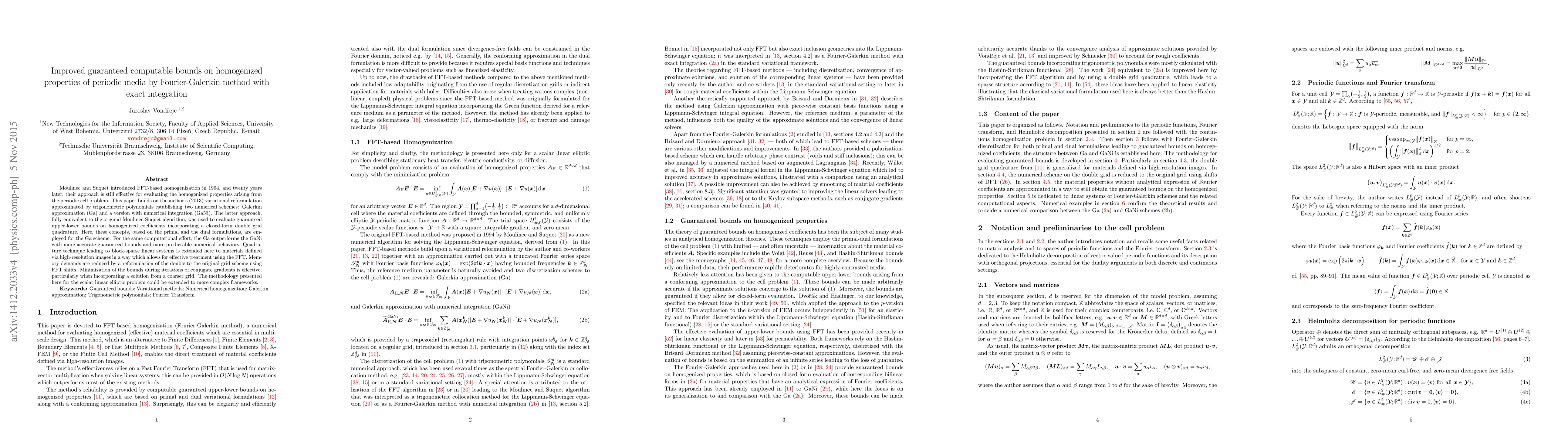 This paper presents a new method for improving guaranteed computable bounds on homogenized properties of periodic media using the Fourier-Galerkin method with exact integration, outperforming a previous approach in accuracy and predictability.