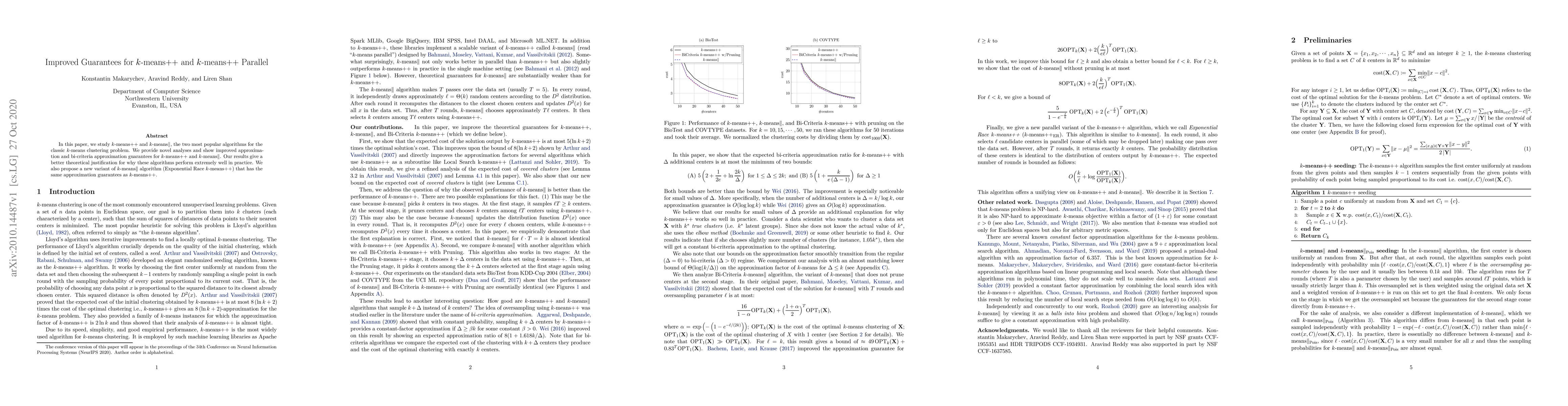 The paper studies k-means++ and k-means++ parallel, providing novel analyses and improved approximation guarantees.