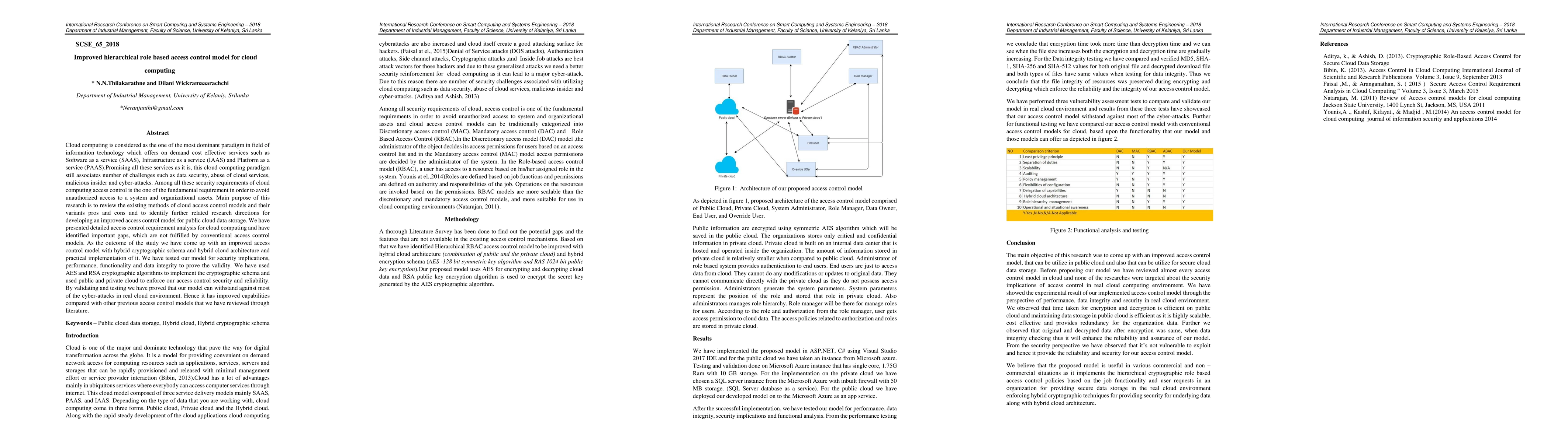 This research proposes an enhanced hierarchical role-based access control model for cloud computing, addressing gaps in existing models by integrating hybrid cryptographic schemes and hybrid cloud architecture. The study validates the model's effectiveness against cyber-attacks, demonstrating improved security, performance, and data integrity compared to conventional methods.