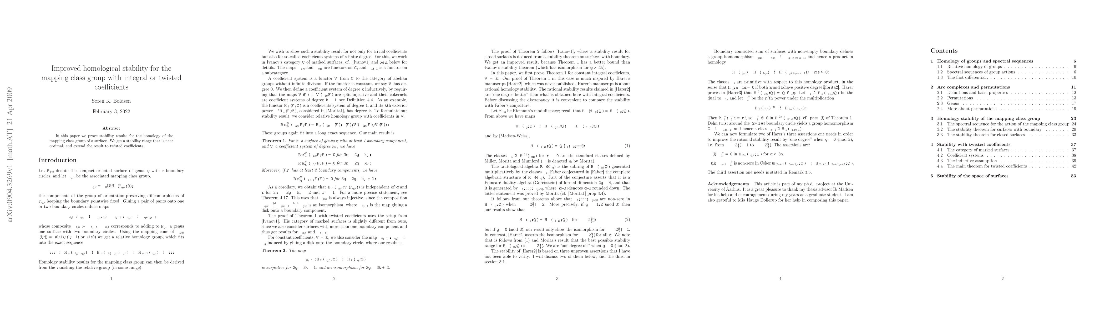 This paper proves stability results for the homology of the mapping class group on a surface with integral or twisted coefficients, offering near-optimal stability ranges.