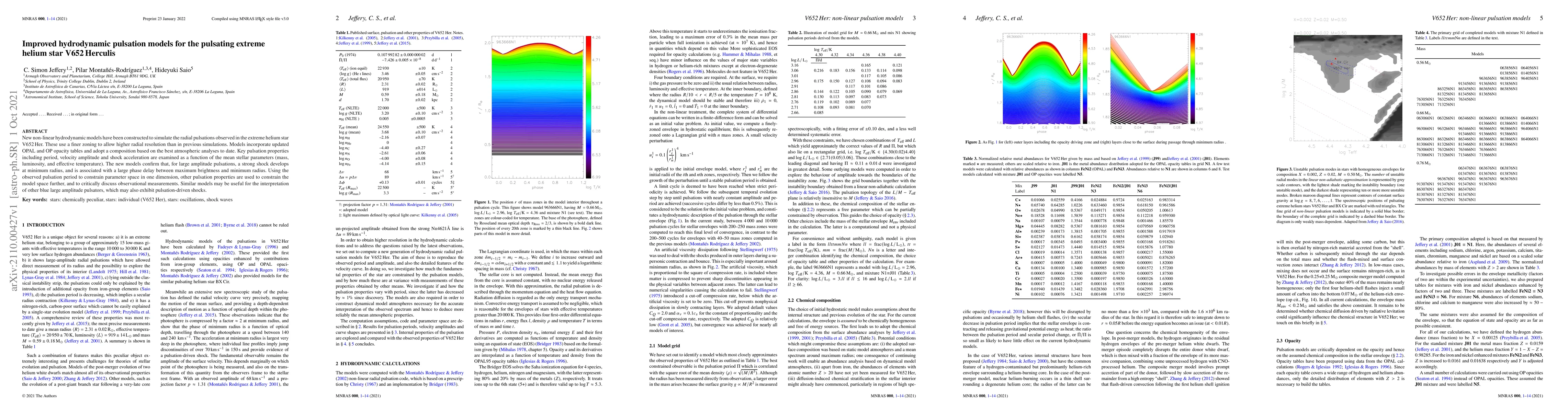 New non-linear hydrodynamic models have been constructed to simulate the radial pulsations observed in the extreme helium star V652 Her. These use a finer zoning to allow higher radial resolution than in previous simulations. Models incorporate updated OPAL and OP opacity tables and adopt a composition based on the best atmospheric analyses to date. Key pulsation properties including period, velocity amplitude and shock acceleration are examined as a function of the mean stellar parameters (mass, luminosity, and effective temperature). The new models confirm that, for large amplitude pulsations, a strong shock develops at minimum radius, and is associated with a large phase delay between maximum brightness and minimum radius. Using the observed pulsation period to constrain parameter space in one dimension, other pulsation properties are used to constrain the model space further, and to critically discuss observational measurements. Similar models may be useful for the interpretation of other blue large amplitude pulsators, which may also exhibit pulsation-driven shocks.