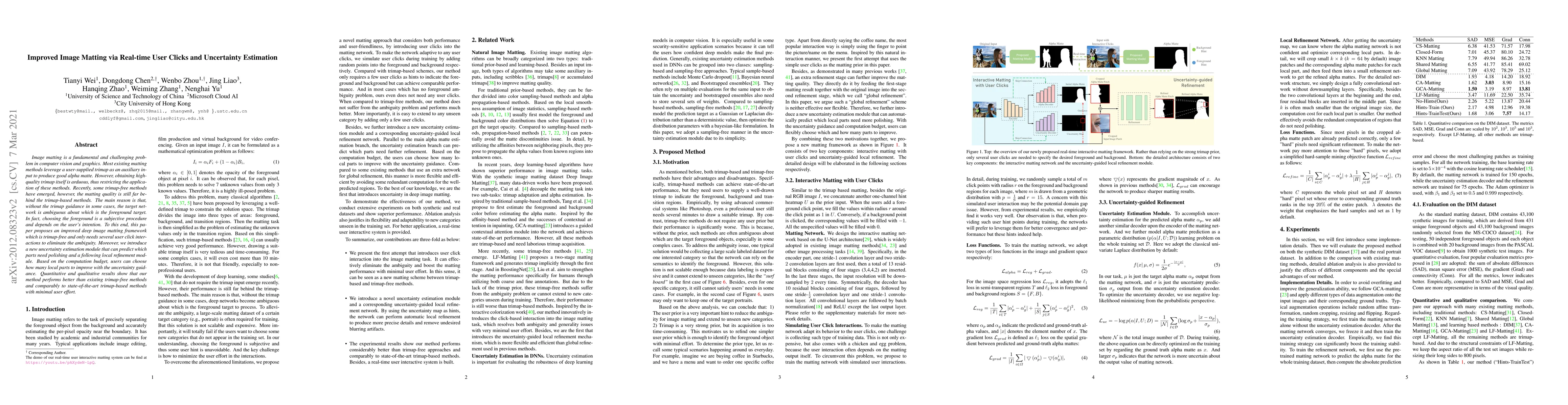 This paper presents an improved image matting framework that is trimap-free, relying only on a few user click interactions to resolve ambiguity. It introduces an uncertainty estimation module to predict areas needing refinement and a local refinement module for enhancement, offering users control over the computational budget and improvement scope. Results demonstrate superior performance to existing trimap-free methods and competitive results with state-of-the-art trimap-based methods, with minimal user input.