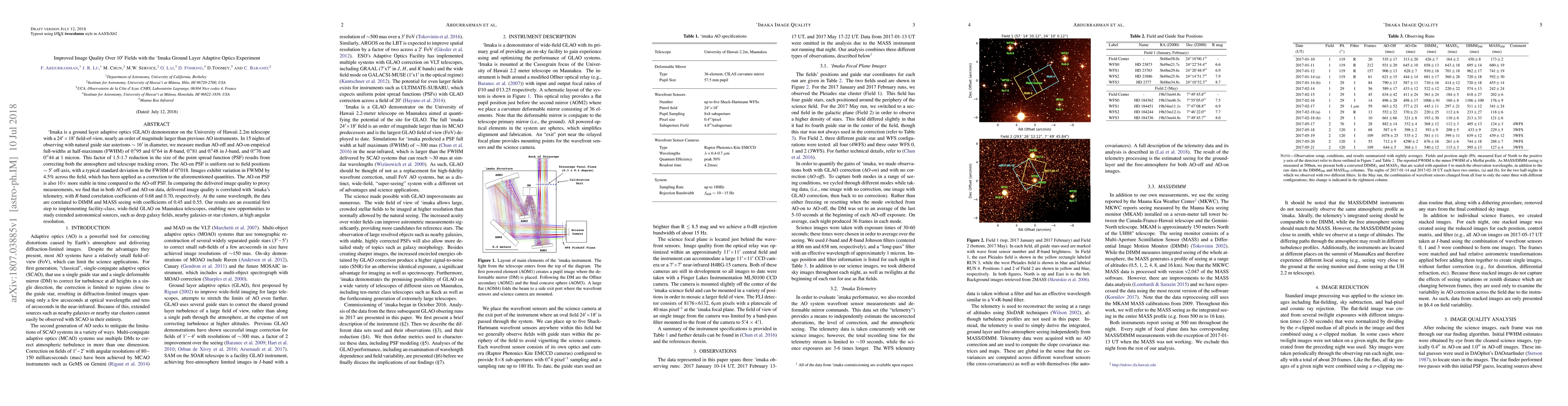 The `Imaka GLAO demonstrator on the University of Hawaii's 2.2m telescope significantly improves image quality over a 10' field by reducing the point spread function by a factor of 1.5-1.7. This wide-field adaptive optics system corrects both atmospheric and telescope tracking errors, achieving uniform image quality up to 5' off-axis.