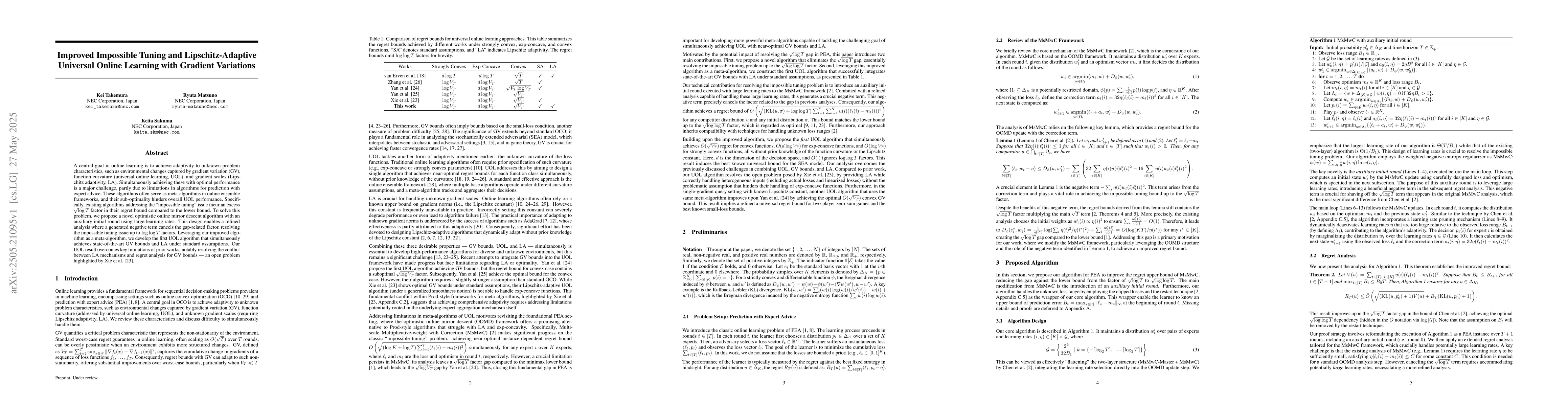 This work distinguishes itself by proposing an improved algorithm that simultaneously achieves state-of-the-art gradient variation bounds and Lipschitz adaptivity under standard assumptions, resolving an open problem in the field.