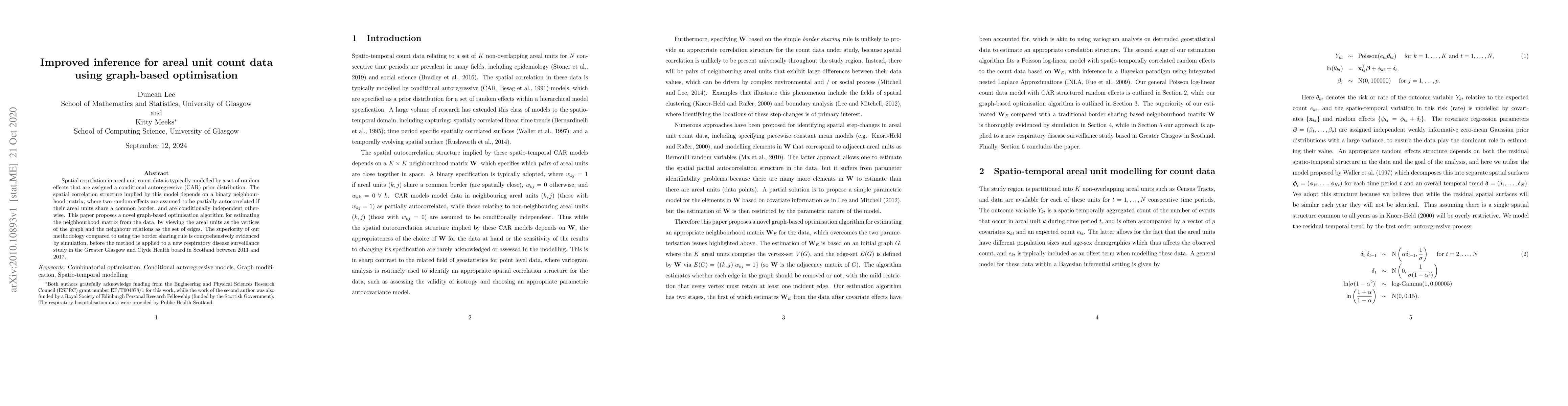 Spatial correlation in areal unit count data is typically modelled by a set of random effects that are assigned a conditional autoregressive (CAR) prior distribution. The spatial correlation structure implied by this model depends on a binary neighbourhood matrix, where two random effects are assumed to be partially autocorrelated if their areal units share a common border, and are conditionally independent otherwise. This paper proposes a novel graph-based optimisation algorithm for estimating the neighbourhood matrix from the data, by viewing the areal units as the vertices of the graph and the neighbour relations as the set of edges. The superiority of our methodology compared to using the border sharing rule is comprehensively evidenced by simulation, before the method is applied to a new respiratory disease surveillance study in the Greater Glasgow and Clyde Health board in Scotland between 2011 and 2017.