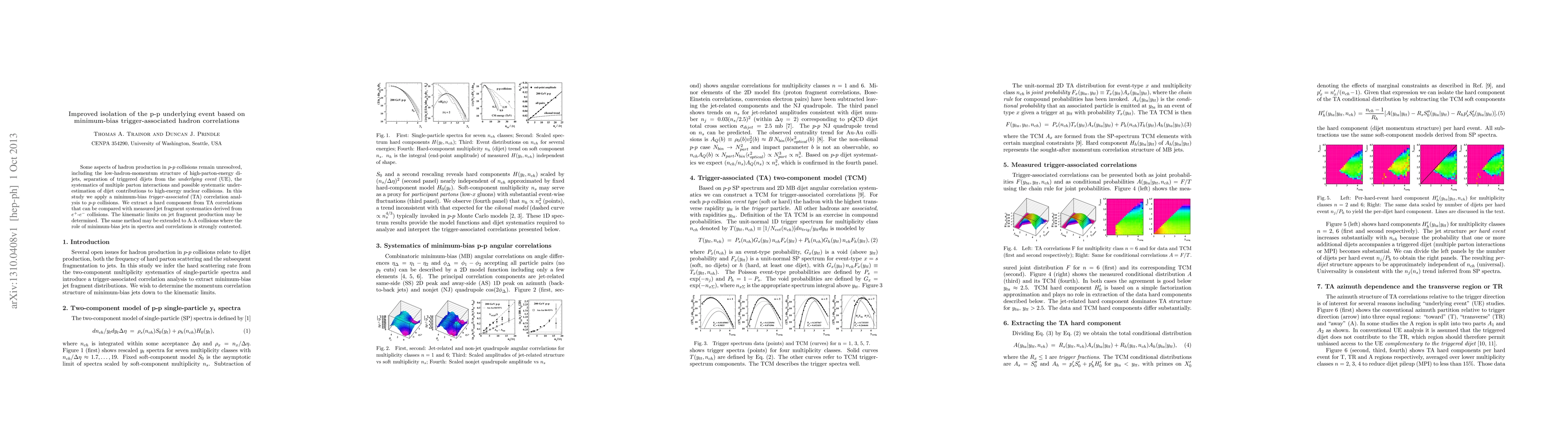 This study applies minimum-bias trigger-associated hadron correlations to isolate the underlying event in p-p collisions, aiming to resolve ambiguities in high-parton-energy dijets and multiple parton interactions. The method extracts a hard component from these correlations for comparison with e-e collision data.
