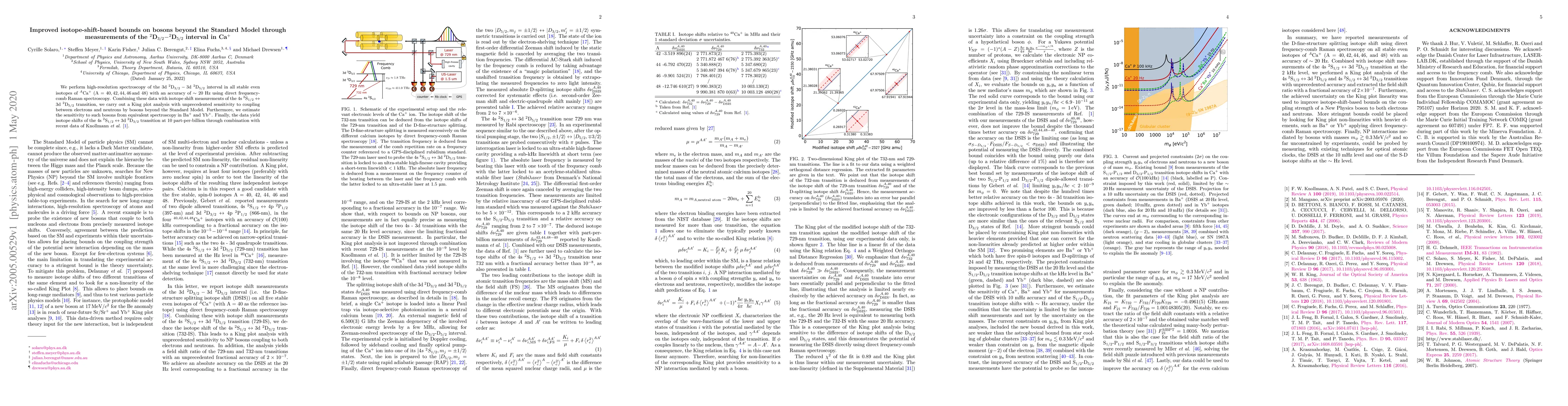 This paper reports high-precision spectroscopy of calcium ions to measure isotope shifts, aiming to improve bounds on bosons beyond the Standard Model. The study uses frequency-comb Raman spectroscopy and a King plot analysis to detect coupling between electrons and neutrons, achieving unprecedented sensitivity.
