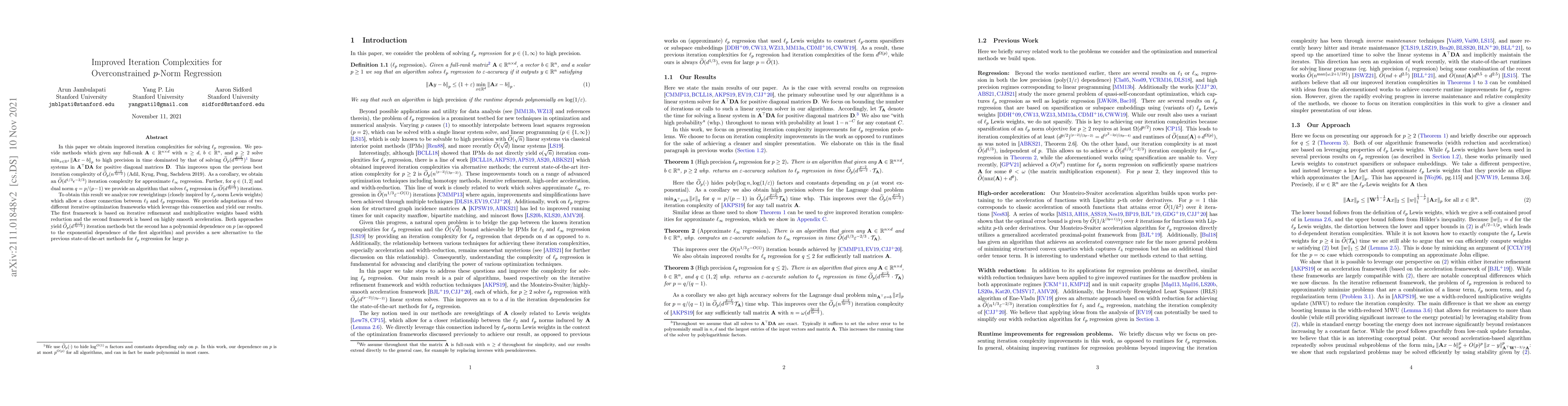 This paper presents improved iteration complexities for solving $ell_p$ regression, reducing dependency from $n^{rac{p-2}{3p-2}}$ to $d^{rac{p-2}{3p-2}}$, where $n geq d$. It introduces row reweightings to connect $ell_2$ and $ell_p$ regression, leading to new iterative methods for $ell_p$ and $ell_q$ regression with enhanced efficiency, particularly for large $p$.