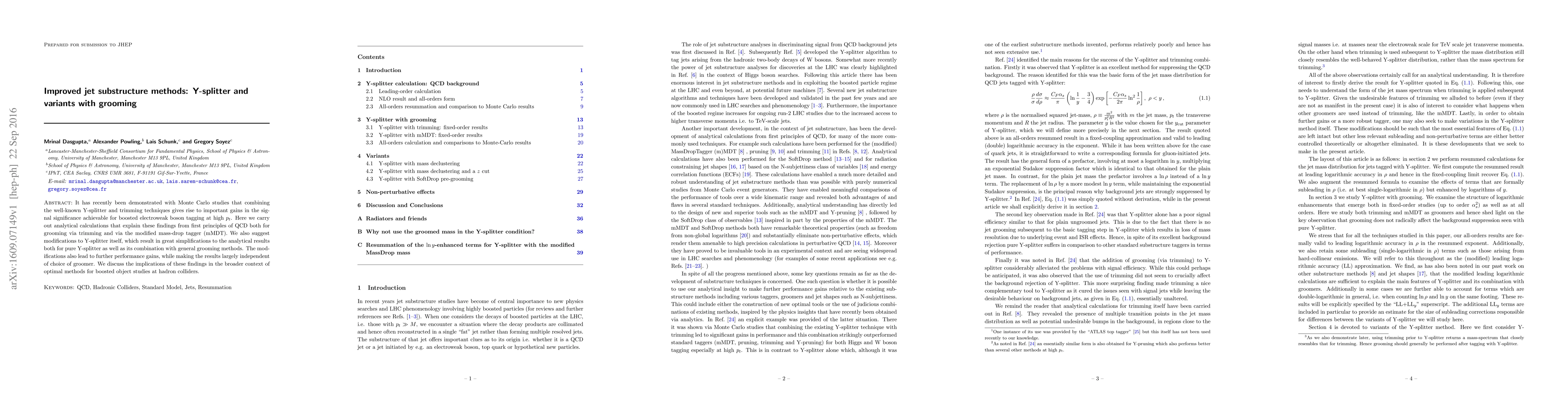 This paper presents analytical calculations explaining gains from combining Y-splitter and trimming techniques for boosted electroweak boson tagging at high momentum. Modifications to Y-splitter are suggested, leading to performance improvements and independence from groomer choice, with implications for optimal boosted object studies at hadron colliders.
