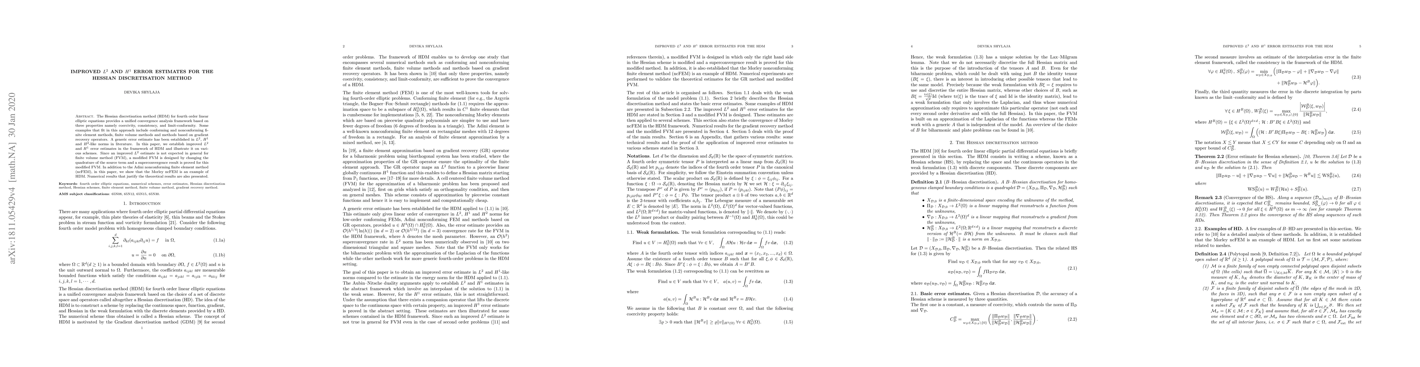 The Hessian discretisation method (HDM) for fourth order linear elliptic equations provides a unified convergence analysis framework based on three properties namely coercivity, consistency, and limit-conformity. Some examples that fit in this approach include conforming and nonconforming finite element methods, finite volume methods and methods based on gradient recovery operators. A generic error estimate has been established in $L^2$, $H^1$ and $H^2$-like norms in literature. In this paper, we establish improved $L^2$ and $H^1$ error estimates in the framework of HDM and illustrate it on various schemes. Since an improved $L^2$ estimate is not expected in general for finite volume method (FVM), a modified FVM is designed by changing the quadrature of the source term and a superconvergence result is proved for this modified FVM. In addition to the Adini nonconforming finite element method (ncFEM), in this paper, we show that the Morley ncFEM is an example of HDM. Numerical results that justify the theoretical results are also presented.