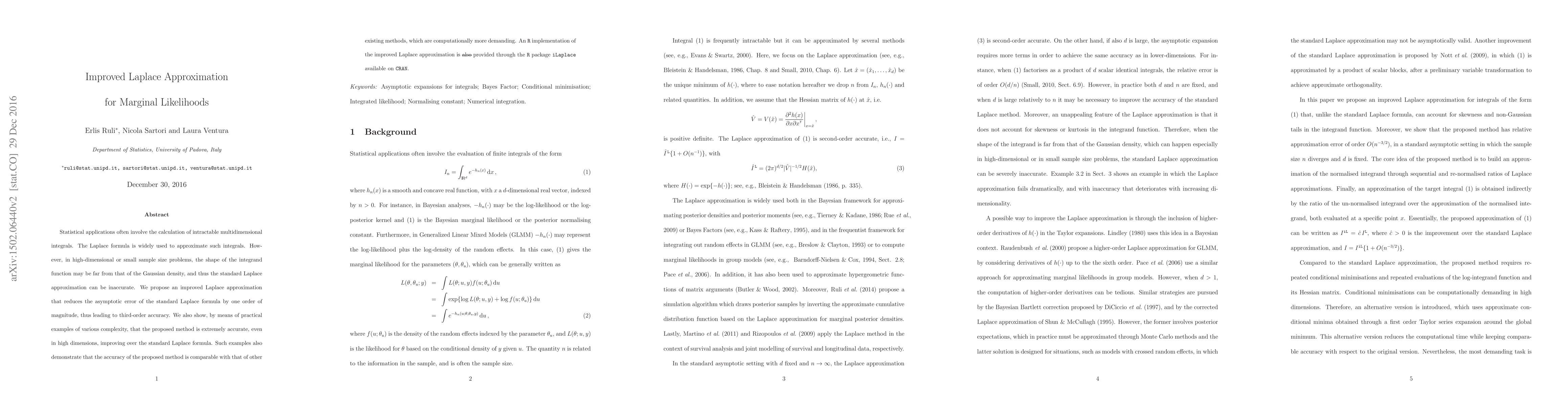 This paper proposes an improved Laplace approximation method to better estimate intractable multidimensional integrals, achieving third-order accuracy and significantly reducing the error compared to the standard Laplace formula, while being more accurate and less computationally demanding than existing methods. An R package, iLaplace, is provided for implementation.