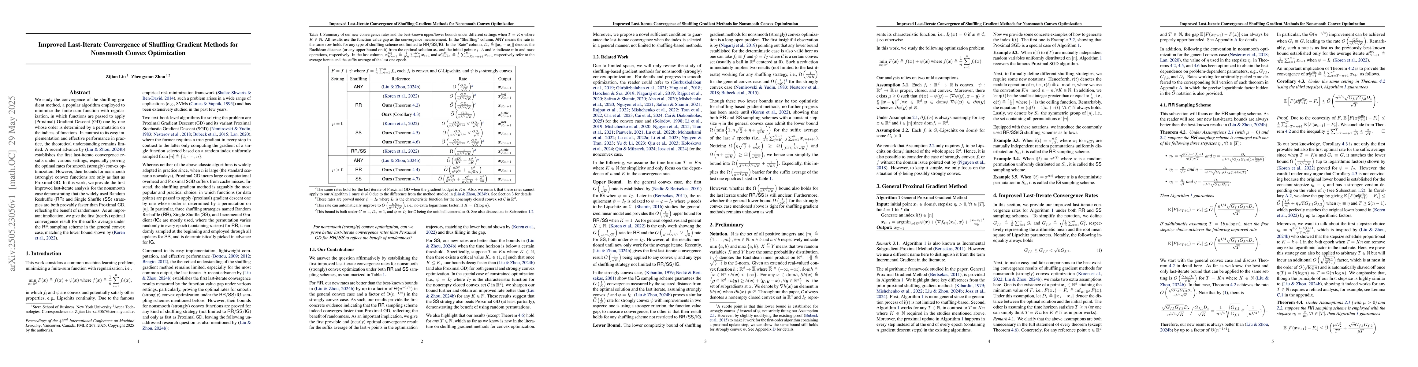 This research distinguishes itself by being the first to provide improved last-iterate convergence guarantees for nonsmooth convex optimization via shuffling gradient methods, surpassing the performance of Proximal GD.