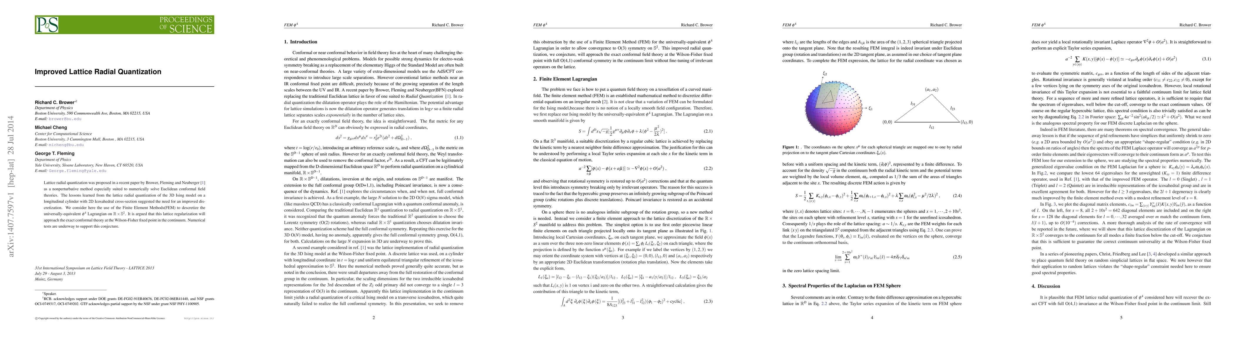 Lattice radial quantization was proposed in a recent paper by Brower, Fleming and Neuberger[1] as a nonperturbative method especially suited to numerically solve Euclidean conformal field theories. The lessons learned from the lattice radial quantization of the 3D Ising model on a longitudinal cylinder with 2D Icosahedral cross-section suggested the need for an improved discretization. We consider here the use of the Finite Element Methods(FEM) to descretize the universally-equivalent $\phi^4$ Lagrangian on $\mathbb R \times \mathbb S^2$. It is argued that this lattice regularization will approach the exact conformal theory at the Wilson-Fisher fixed point in the continuum. Numerical tests are underway to support this conjecture.