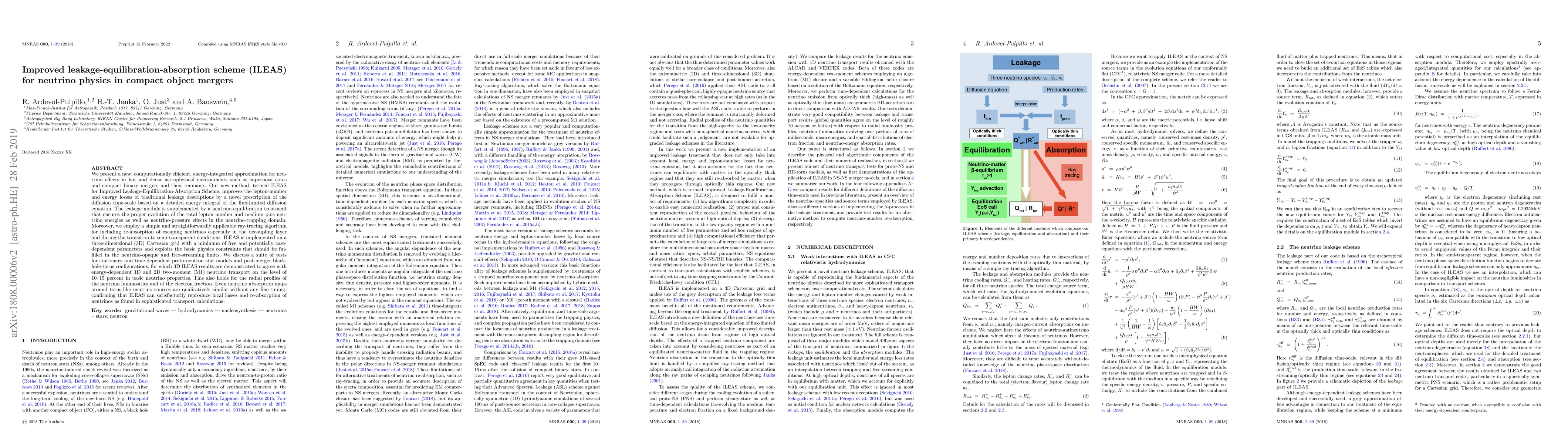 The new ILEAS scheme provides an efficient, energy-integrated approximation for neutrino effects in compact object mergers, improving traditional leakage descriptions with a novel diffusion time-scale prescription and including equilibration and re-absorption treatments. ILEAS results agree with detailed 1D and 2D neutrino transport calculations within 10-15 percent, demonstrating its accuracy in modeling neutrino dynamics.