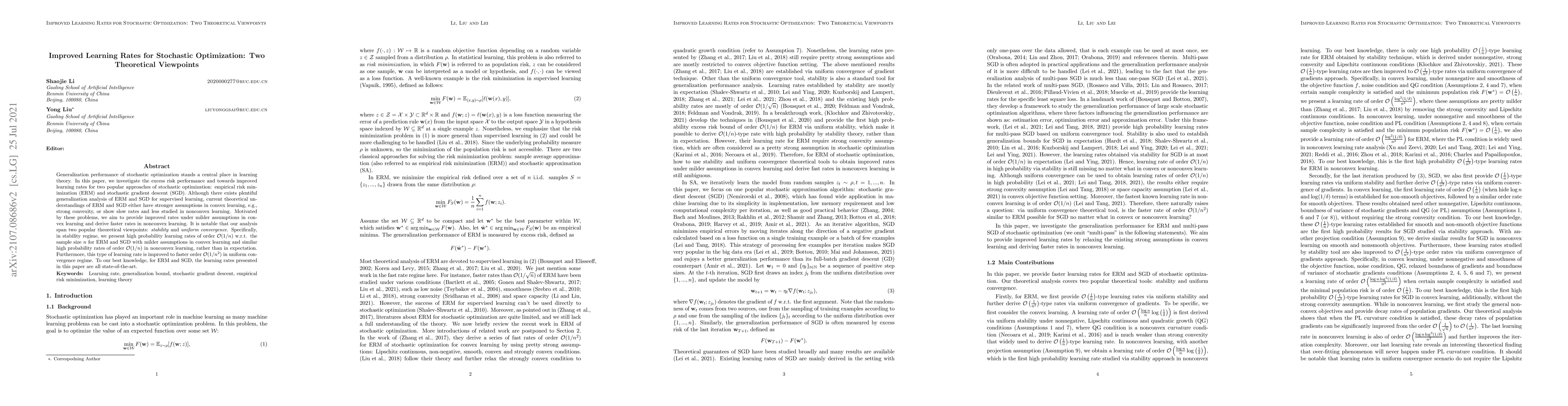 This paper investigates improved learning rates for stochastic optimization methods, specifically empirical risk minimization (ERM) and stochastic gradient descent (SGD), under milder assumptions in convex learning and faster rates in nonconvex learning. It presents high probability learning rates of order $\mathcal{O} (1/n)$ and improved rates of $\mathcal{O} (1/n^2)$ in uniform convergence, offering state-of-the-art results.