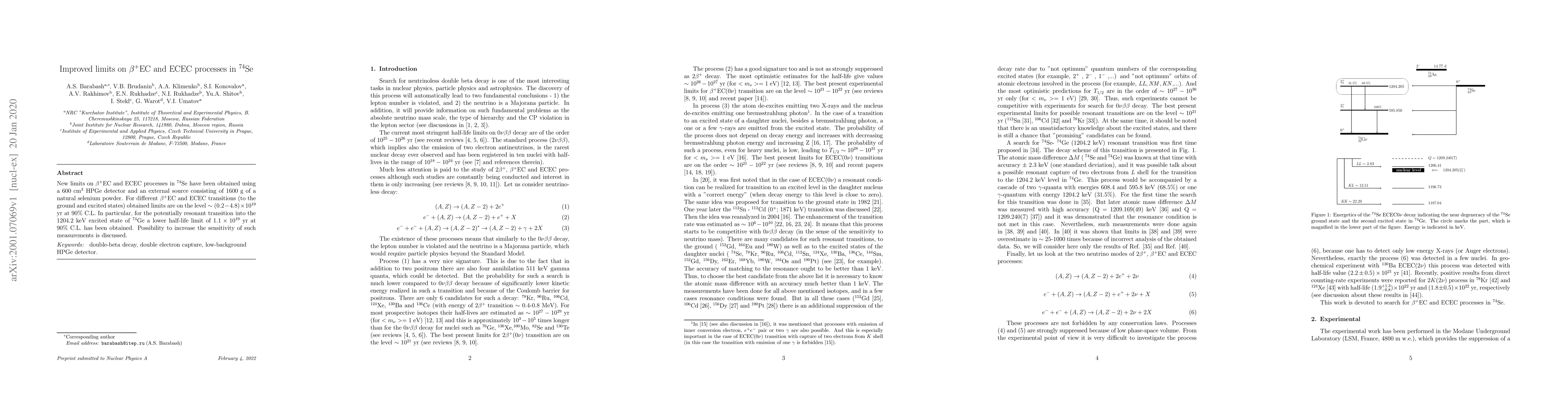 Researchers have set new limits on the half-lives of two types of nuclear processes in 74Se, with a focus on potentially resonant transitions to a nearby element, Ge. The results improve our understanding of these processes and suggest potential avenues for increasing sensitivity.