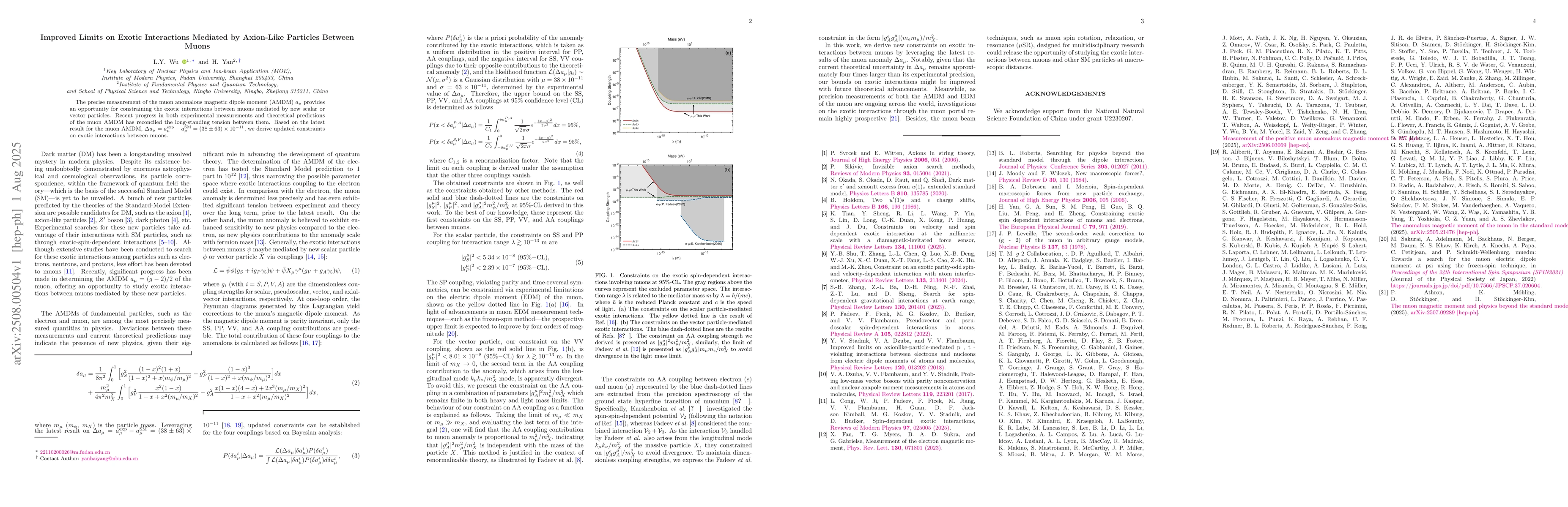 This research refines limits on unconventional muon interactions via hypothetical particles called axion-like particles, using the latest precise measurement of the muon anomalous magnetic moment, $Delta a_mu = (38 pm 63) imes 10^{-11}$.