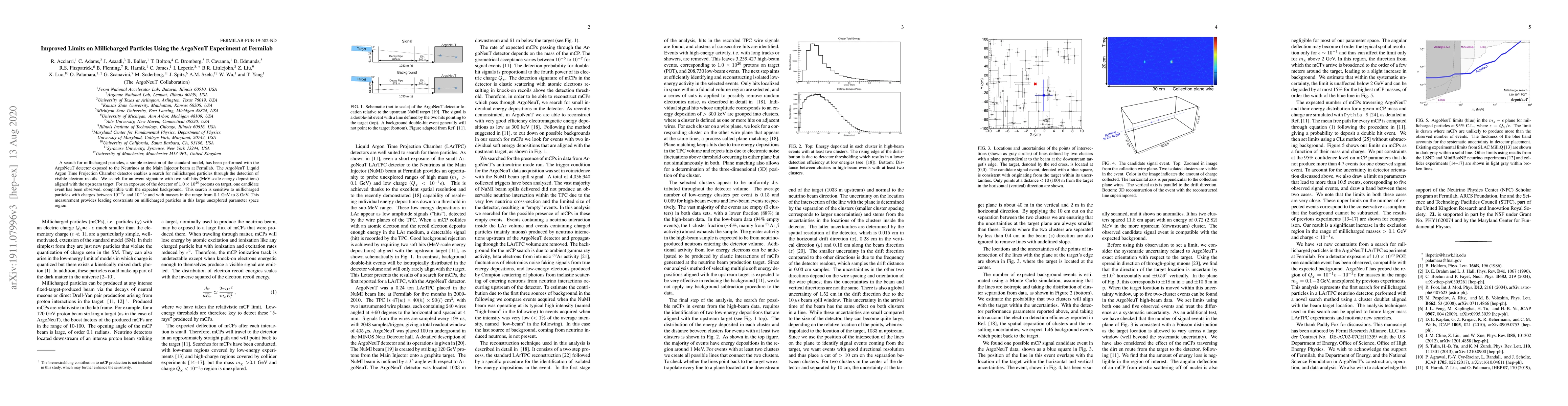 The ArgoNeuT experiment at Fermilab searched for millicharged particles using a Liquid Argon Time Projection Chamber, observing one candidate event compatible with background. This study sets leading constraints on millicharged particles with charges between $10^{-3}e$ and $10^{-1}e$ and masses from $0.1$ GeV to $3$ GeV.