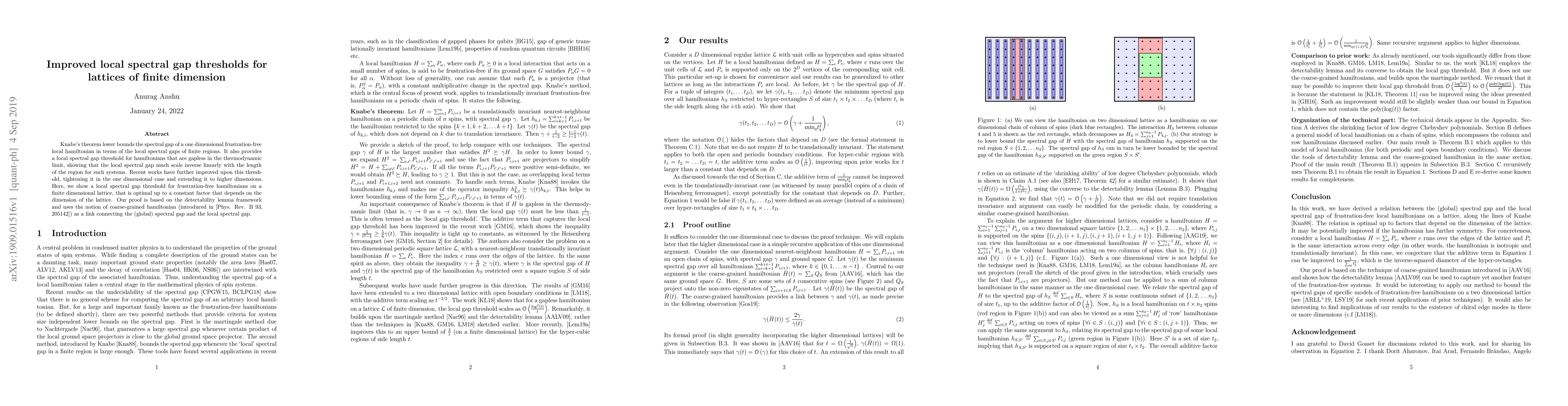 Knabe's theorem lower bounds the spectral gap of a one dimensional frustration-free local hamiltonian in terms of the local spectral gaps of finite regions. It also provides a local spectral gap threshold for hamiltonians that are gapless in the thermodynamic limit, showing that the local spectral gap much scale inverse linearly with the length of the region for such systems. Recent works have further improved upon this threshold, tightening it in the one dimensional case and extending it to higher dimensions. Here, we show a local spectral gap threshold for frustration-free hamiltonians on a finite dimensional lattice, that is optimal up to a constant factor that depends on the dimension of the lattice. Our proof is based on the detectability lemma framework and uses the notion of coarse-grained hamiltonian (introduced in [Phys. Rev. B 93, 205142]) as a link connecting the (global) spectral gap and the local spectral gap.