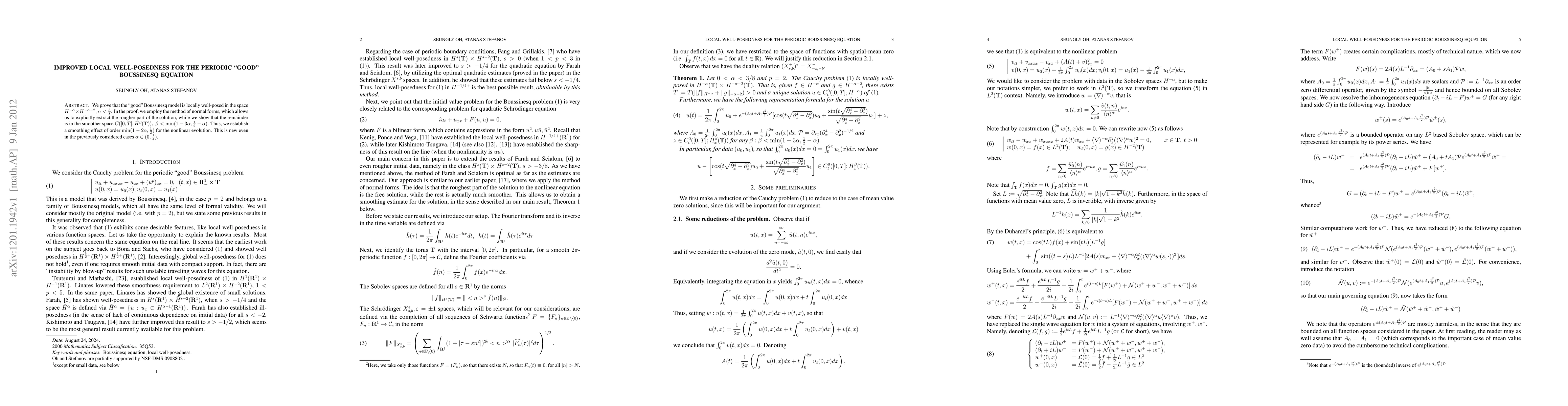 We prove that the "good" Boussinesq model with the periodic boundary condition is locally well-posed in the space $H^{s}\times H^{s-2}$ for $s > -3/8$. In the proof, we employ the normal form approach, which allows us to explicitly extract the rougher part of the solution. This also leads to the conclusion that the remainder is in a smoother space $C([0,T], H^{s+a}), where $0 <= a < \min (2s+1, 1/2)$. If we have a mean-zero initial data, this implies a smoothing effect of this order for the non-linearity. This is new even in the previously considered cases $s > -1/4$.