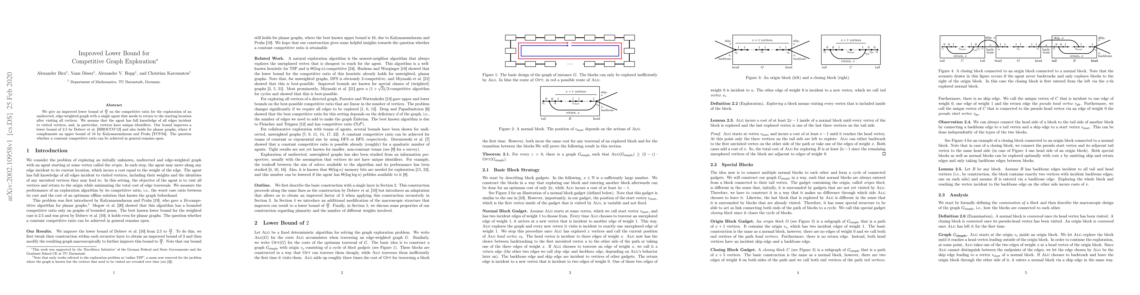 Researchers improved the lower bound for competitive graph exploration to 10/3, a significant reduction from a previous bound of 2.5, and discovered that this holds true for planar graphs.