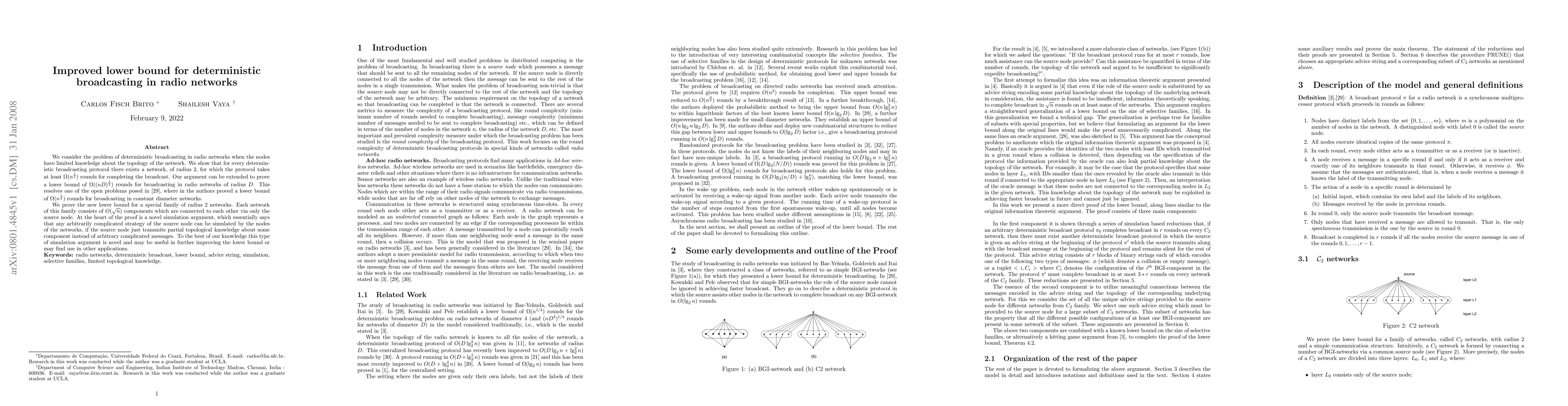 This paper establishes a new lower bound of $\Omega(\sqrt{n})$ rounds for deterministic broadcasting in radio networks with limited topological knowledge, resolving an open problem. It introduces a novel simulation argument to demonstrate that any complex strategy can be mimicked by network nodes when the source node shares partial topological information.