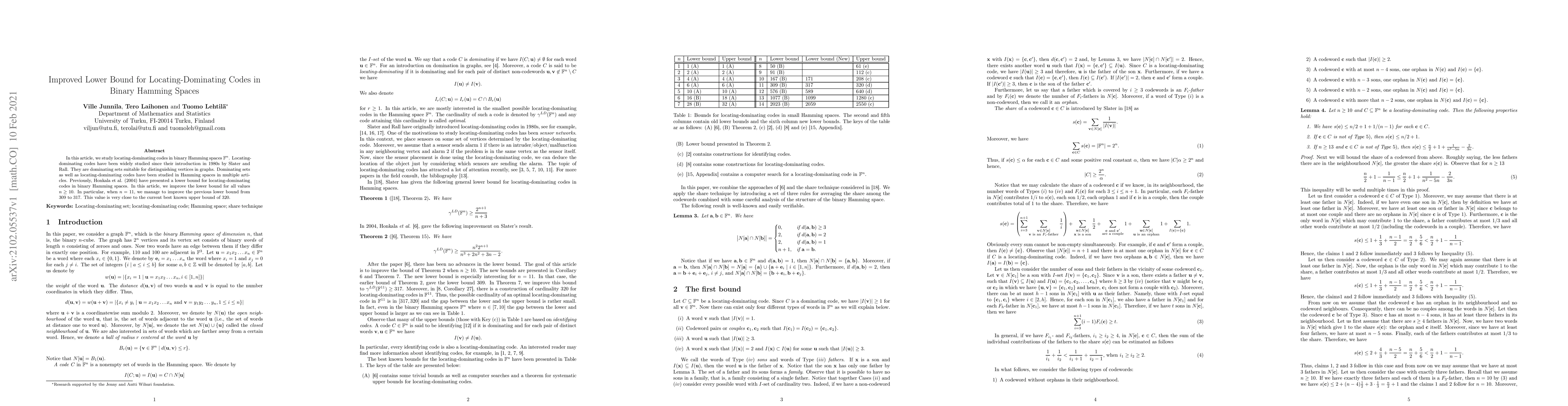 Researchers improved the lower bound for locating-dominating codes in binary Hamming spaces from 309 to 317 for n = 11, bringing it close to the current best known upper bound of 320.