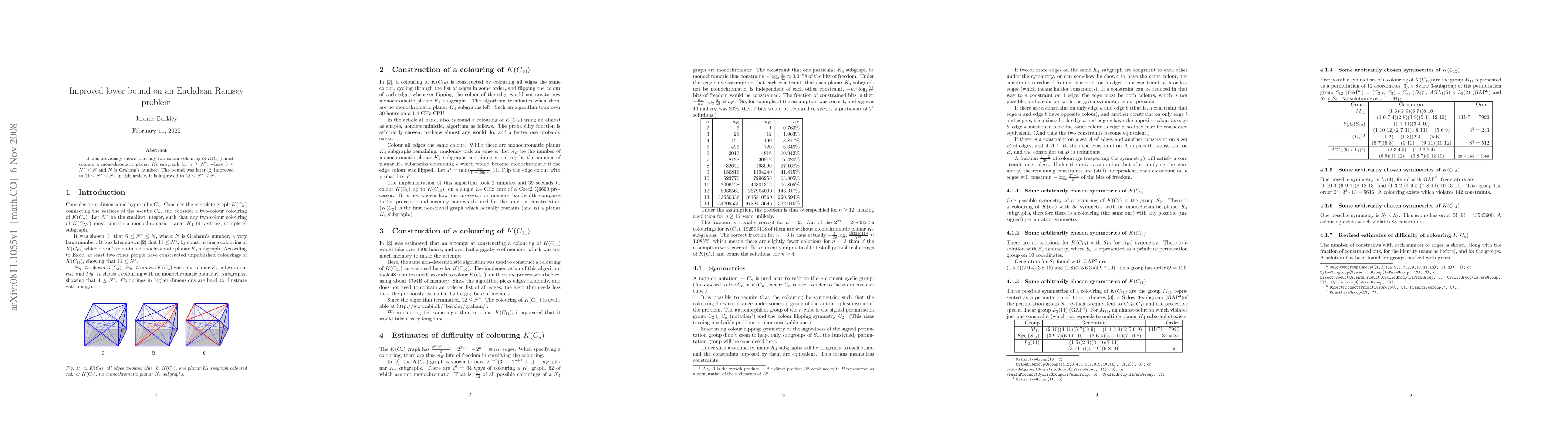 It was previously shown that any two-colour colouring of K(C_n) must contain a monochromatic planar K_4 subgraph for n >= N^*, where 6 <= N^* <= N and N is Graham's number. The bound was later improved to 11 <= N^* <= N. In this article, it is improved to 13 <= N^* <= N.