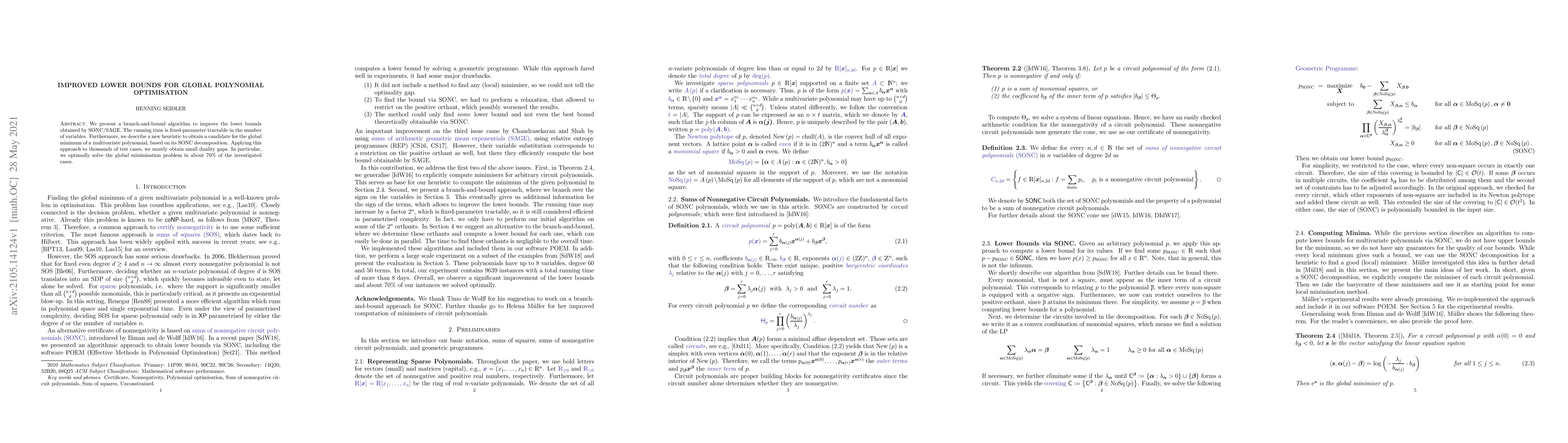 Researchers improved lower bounds for global polynomial optimization using a branch-and-bound algorithm and heuristic method, achieving optimal solutions in 70% of test cases.