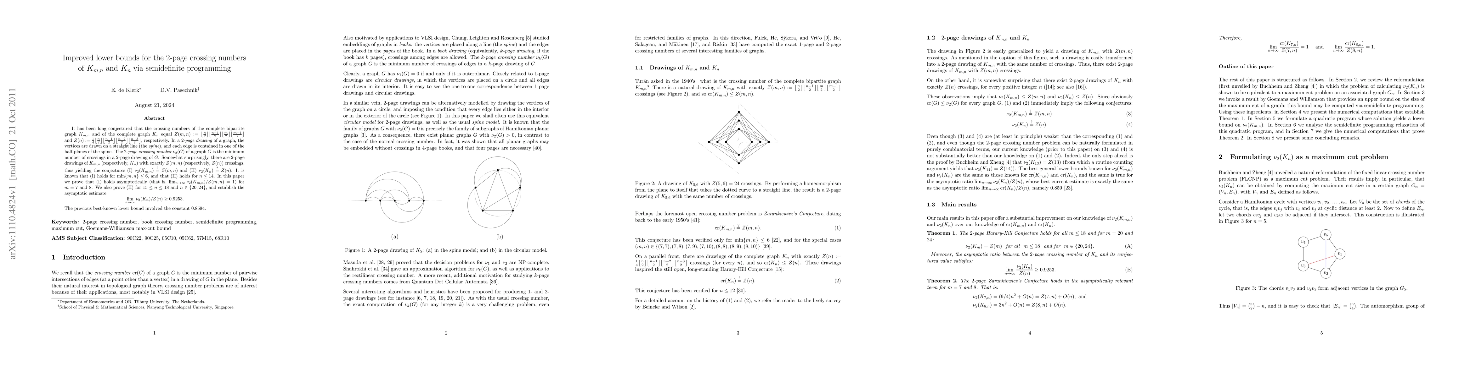 This paper improves lower bounds for the 2-page crossing numbers of complete bipartite graphs K_{m,n} and complete graphs K_n using semidefinite programming. It proves that the conjectured crossing numbers hold asymptotically for m=7,8 and for specific ranges of n, including n=15-18 and n=20,24, establishing a new lower bound of 0.9253.