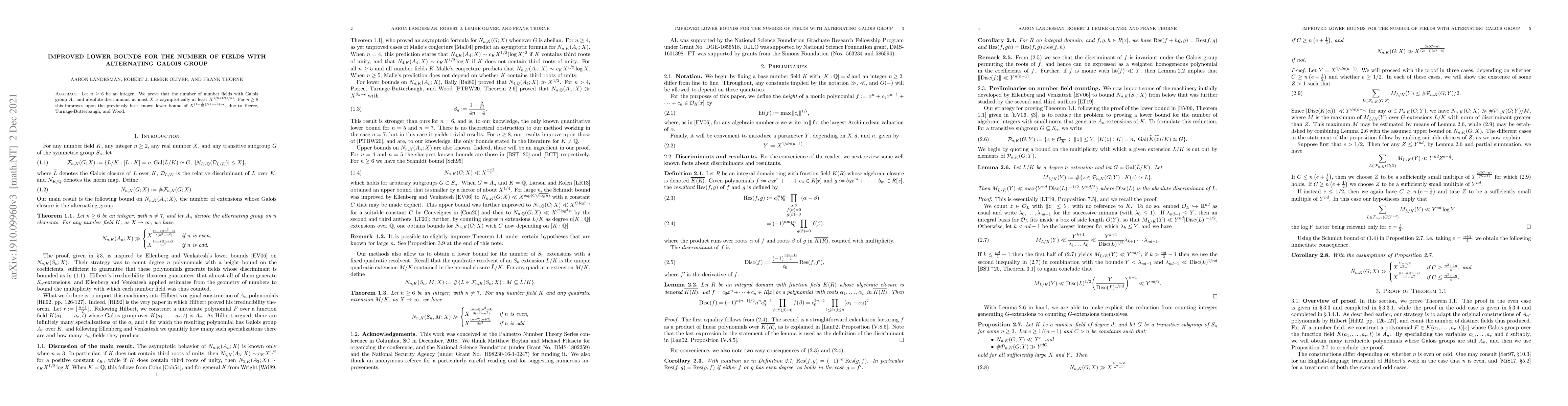 Researchers have established a new lower bound for the number of fields with alternating Galois group, improving upon previous estimates and shedding light on the distribution of such fields.