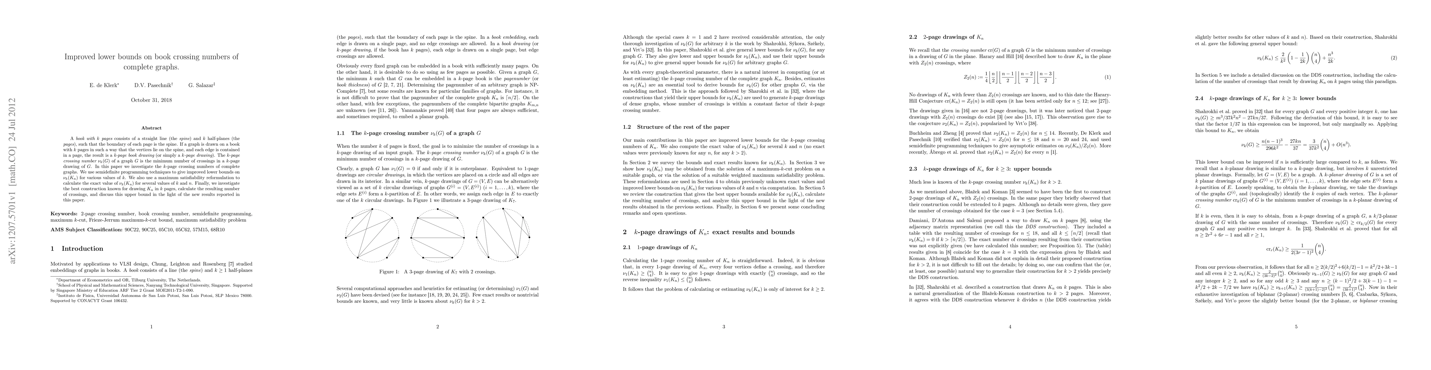 This paper improves lower bounds on the k-page crossing numbers of complete graphs K_n using semidefinite programming and exact calculations. It also evaluates the best constructions for k-page drawings of K_n and discusses their implications.