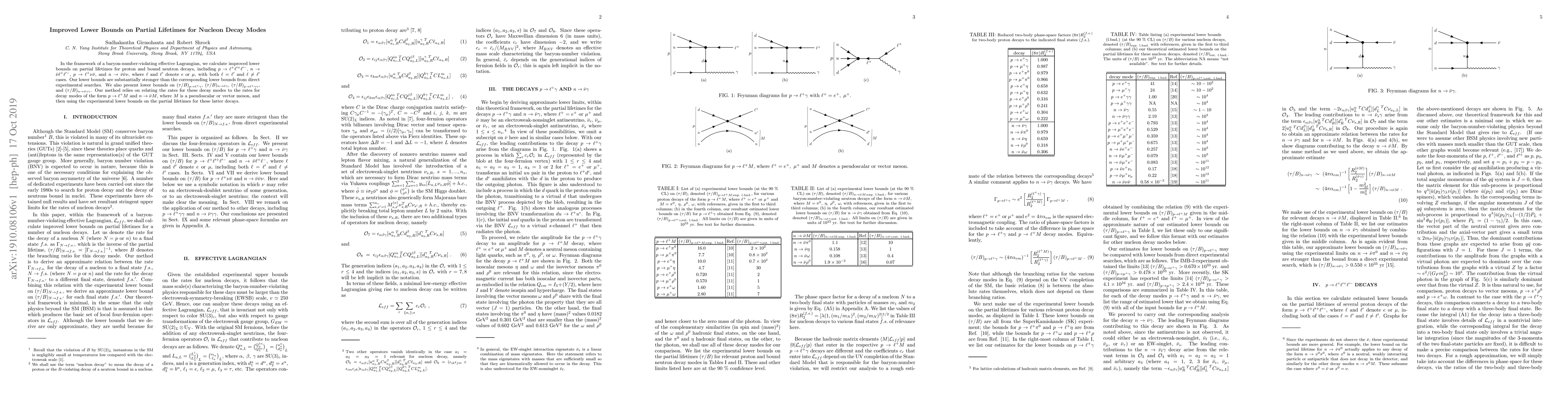 In the framework of a baryon-number-violating effective Lagrangian, we calculate improved lower bounds on partial lifetimes for proton and bound neutron decays, including $p \to \ell^+ \ell'^+ \ell'^-$, $n \to \bar\nu \ell^+ \ell'^-$, $p \to \ell^+ \nu\bar\nu$, and $n \to \bar\nu \bar\nu \nu$, where $\ell$ and $\ell'$ denote $e$ or $\mu$, with both $\ell = \ell'$ and $\ell \ne \ell'$ cases. Our lower bounds are substantially stronger than the corresponding lower bounds from direct experimental searches. We also present lower bounds on $(\tau/B)_{p \to \ell^+\gamma}$, $(\tau/B)_{n \to \bar\nu \gamma}$, $(\tau/B)_{p \to \ell^+ \gamma\gamma}$, and $(\tau/B)_{n \to \bar\nu \gamma\gamma}$. Our method relies on relating the rates for these decay modes to the rates for decay modes of the form $p \to \ell^+ M$ and $n \to \bar\nu M$, where $M$ is a pseudoscalar or vector meson, and then using the experimental lower bounds on the partial lifetimes for these latter decays.
