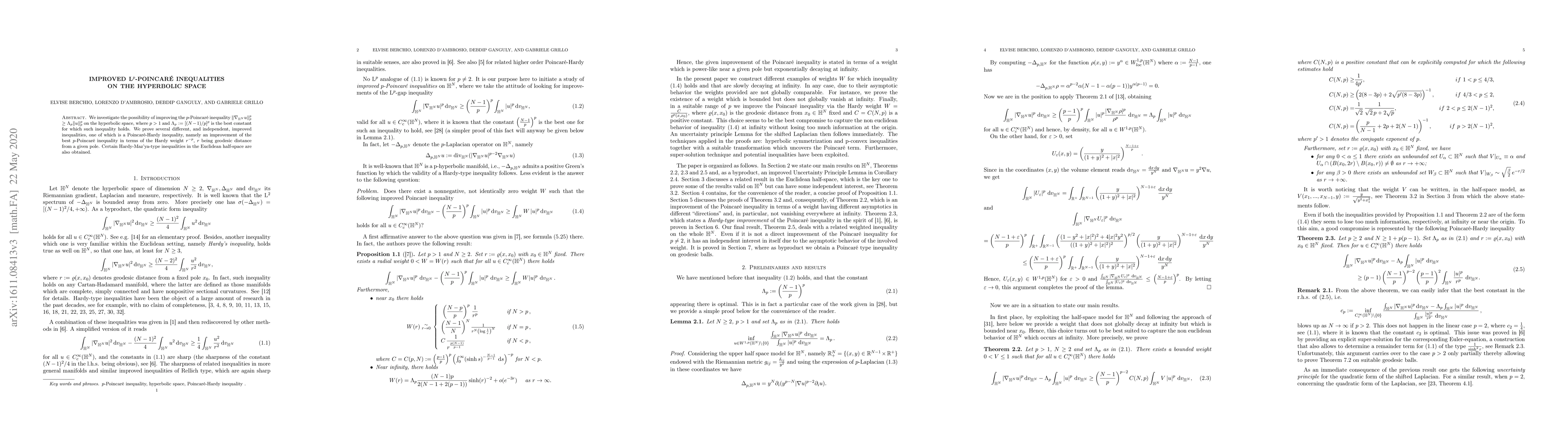 We investigate the possibility of improving the $p$-Poincar\'e inequality $\|\nabla_{\mathbb{H}^N} u\|_p \ge \Lambda_p \|u\|_p$ on the hyperbolic space, where $p>2$ and $\Lambda_p:=[(N-1)/p]^{p}$ is the best constant for which such inequality holds. We prove several different, and independent, improved inequalities, one of which is a Poincar\'e-Hardy inequality, namely an improvement of the best $p$-Poincar\'e inequality in terms of the Hardy weight $r^{-p}$, $r$ being geodesic distance from a given pole. Certain Hardy-Maz'ya-type inequalities in the Euclidean half-space are also obtained.