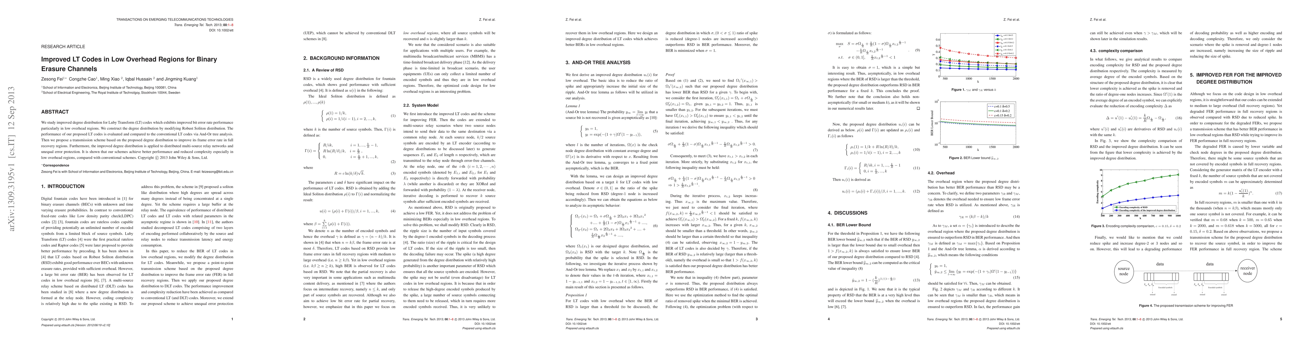 This paper proposes an improved degree distribution for Luby Transform (LT) codes to enhance bit error rate performance in low overhead regions for binary erasure channels. The new distribution, derived from Robust Soliton, is shown to outperform conventional LT codes in terms of frame error rate and complexity.