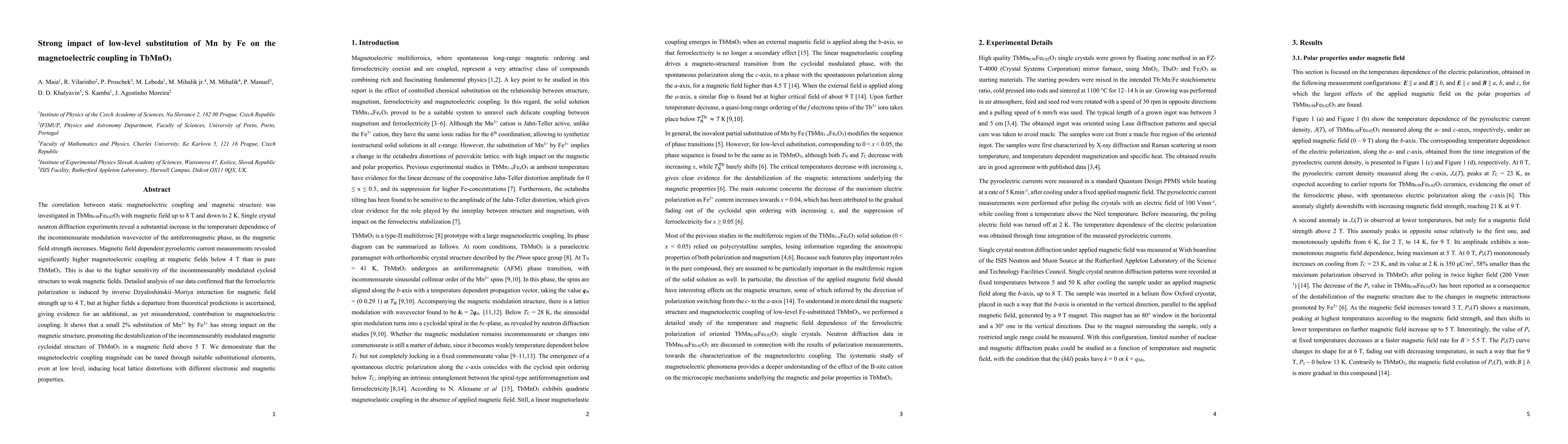 This study investigates the magnetoelectric properties of $TbMn_{0.98}Fe_{0.02}O_{3}$, revealing a significant enhancement due to a 2% substitution of $Mn^{3+}$ with $Fe^{3+}$. Neutron diffraction shows increased temperature dependence of the incommensurate modulation vector, leading to stronger ferroelectric polarization changes under magnetic fields compared to other multiferroic materials.