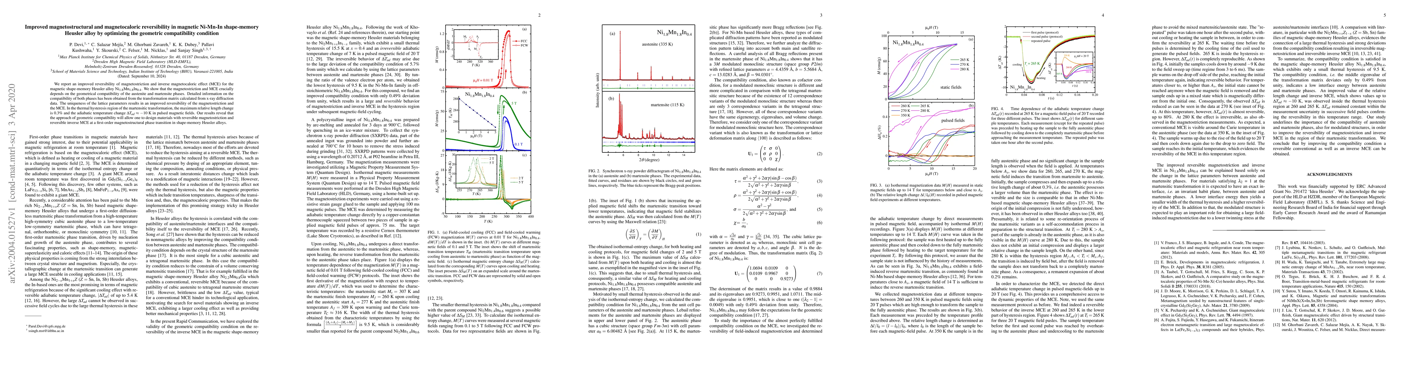 This study optimizes the geometric compatibility condition in the Ni-Mn-In Heusler alloy to enhance the reversibility of magnetostriction and the inverse magnetocaloric effect. The improved lattice parameters lead to a maximum relative length change of 0.3% and an adiabatic temperature change of -10 K, demonstrating the potential for designing reversible magnetostructural materials.