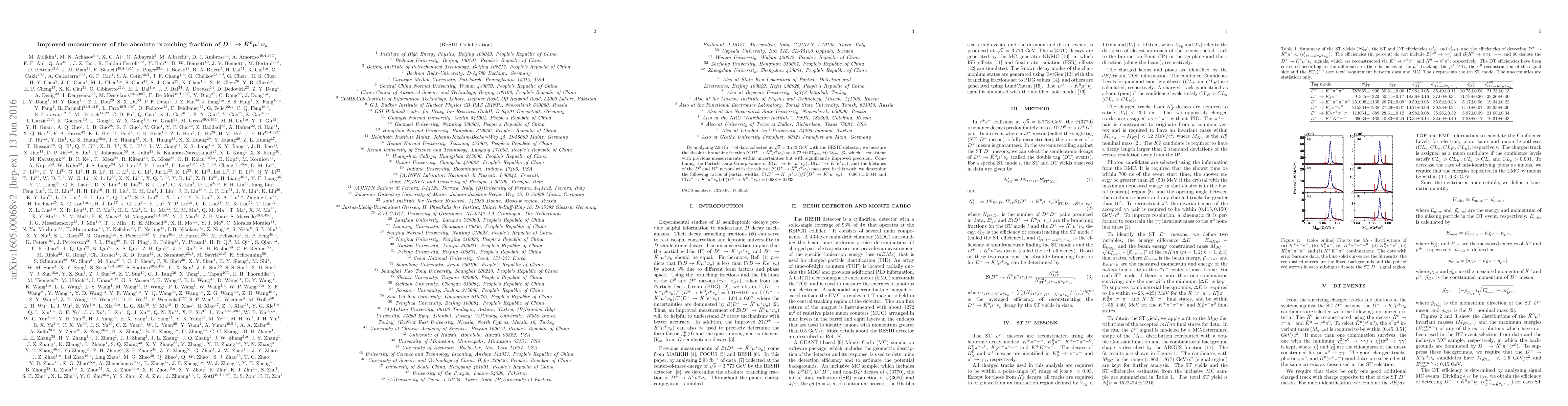 This study, using 2.93 fb$^{-1}$ of data from the BESIII detector, measures the improved absolute branching fraction ${\mathcal B}(D^{+}\rightarrow\bar K^0\mu^{+}\nu_{\mu})$ to be $(8.72 \pm 0.07_{\rm stat.} \pm 0.18_{\rm sys.})\%$. The results provide significant precision improvements and are consistent with previous measurements.