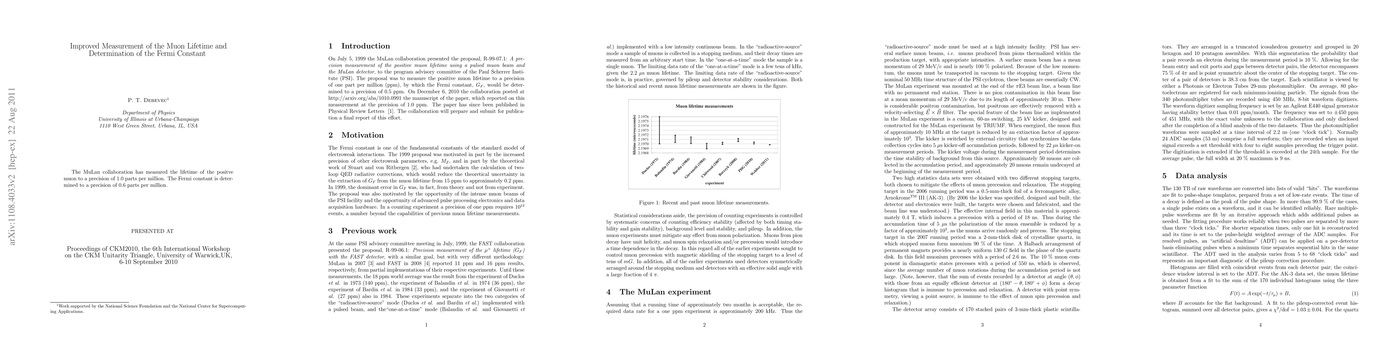 Summary: The MuLan collaboration has achieved a highly precise measurement of the positive muon lifetime at 1.0 parts per million, and concurrently determined the Fermi constant with an accuracy of 0.6 parts per million, contributing significantly to fundamental particle physics.