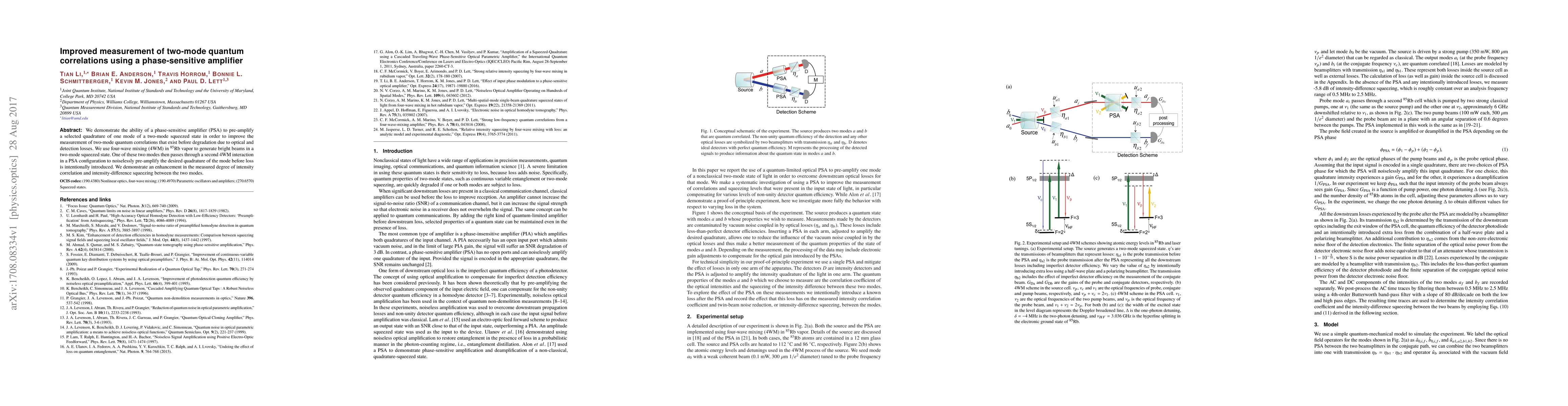 This paper demonstrates the use of a phase-sensitive amplifier to pre-amplify a quadrature of a mode in a two-mode squeezed state, enhancing the measurement of quantum correlations before degradation from optical and detection losses. The study employs four-wave mixing in $^{85}$Rb vapor to generate the squeezed state and shows improved intensity correlation and squeezing between the modes.