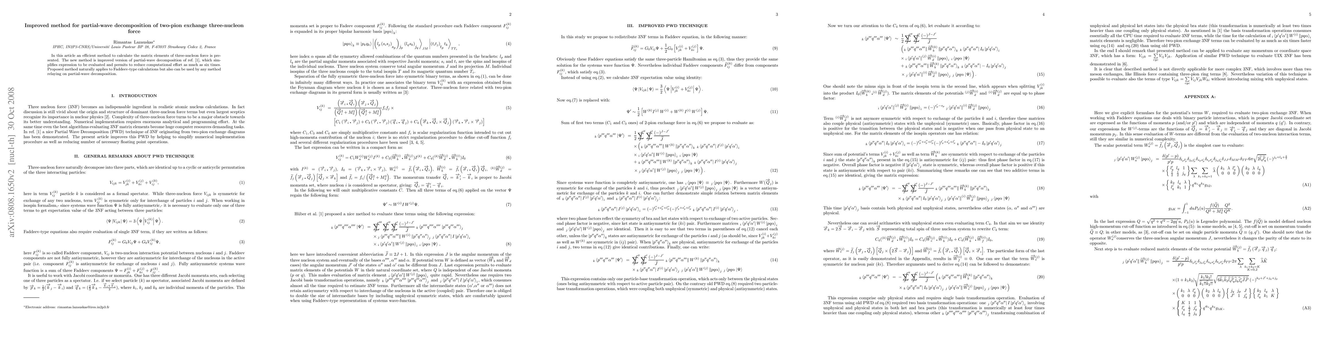 In this article an efficient method to calculate the matrix elements of three-nucleon force is presented. The new method is improved version of partial-wave decomposition presented in Few-Body Syst. 22 (1997) 107, which simplifies expression to be evaluated and permits to reduce computational effort as much as six times. Proposed method naturally applies to Faddeev-type calculations but also can be used by any method relaying on partial-wave decomposition.