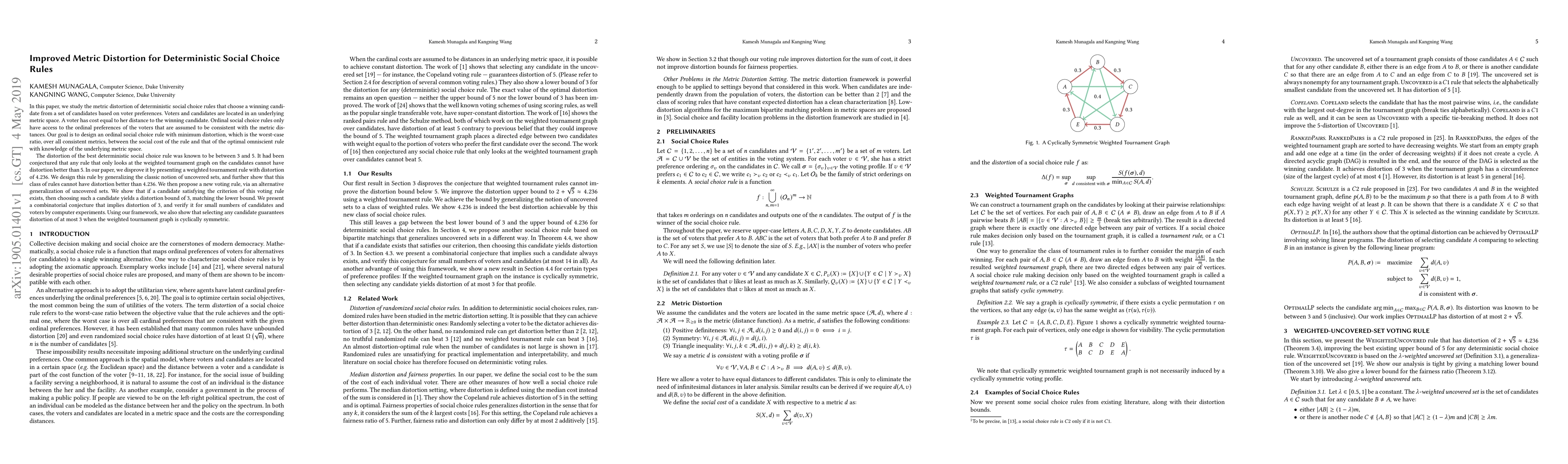 This paper presents a new ordinal social choice rule that achieves a metric distortion of $4.236$, improving upon the previously known bounds of $3$ to $5$. The authors disprove the conjecture that weighted tournament rules cannot achieve distortion better than $5$, and propose a new voting rule that matches the lower bound of $3$ distortion under certain conditions.