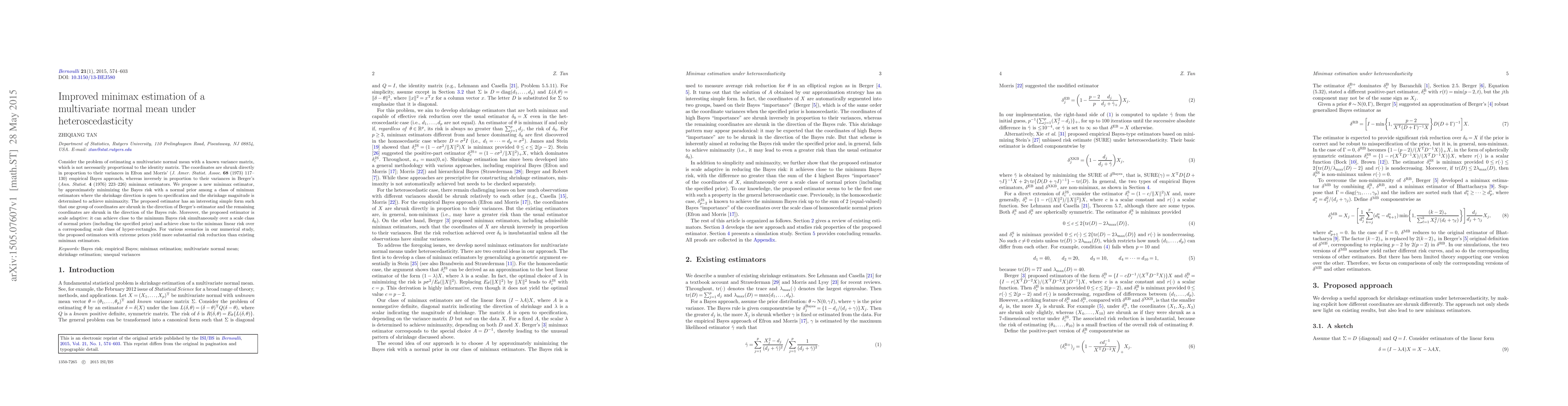 This paper introduces a new minimax estimator for the mean of a multivariate normal distribution under heteroscedasticity, achieving better risk reduction than existing methods. The proposed estimator combines shrinkage directions from both Efron and Morris' empirical Bayes approach and Berger's minimax estimators to adaptively shrink coordinates according to their variances.