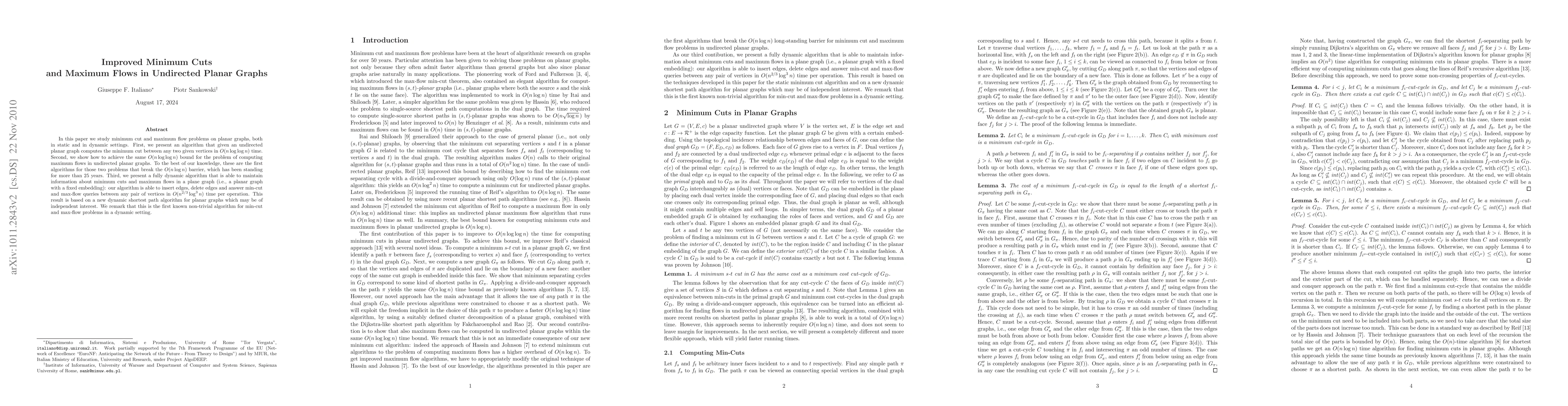 This paper presents algorithms for computing minimum cuts and maximum flows in undirected planar graphs, achieving O(n log log n) time for both static and dynamic settings, breaking the long-standing O(n log n) barrier. It also introduces a dynamic algorithm for maintaining these properties in O(n^(2/3) log^3 n) time per operation.